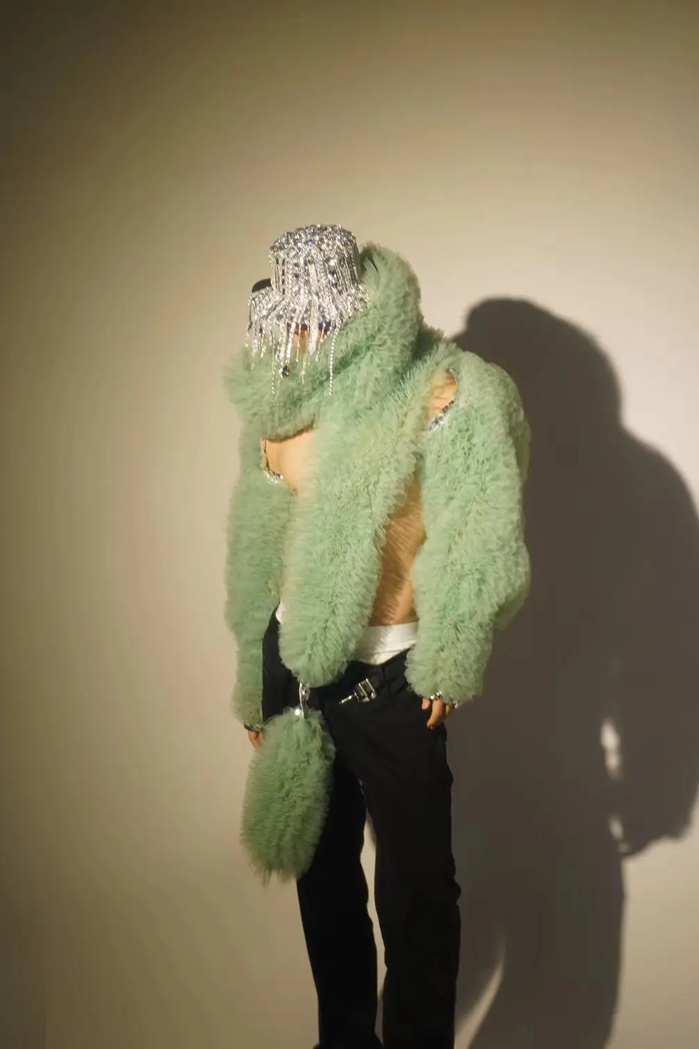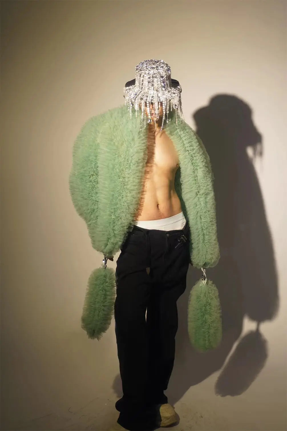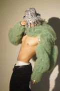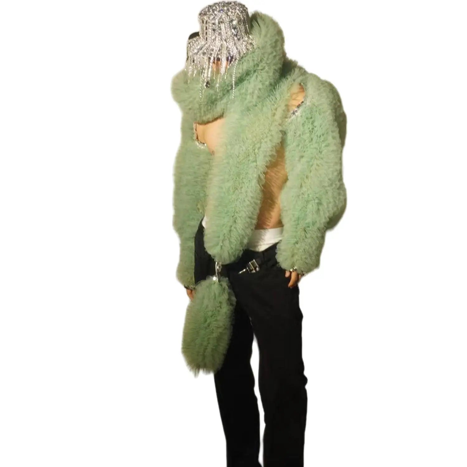 Glamorous Green Faux Fur Stage Jacket for Men and Women - Eye-Catching Performance Wear for DJs and Singers