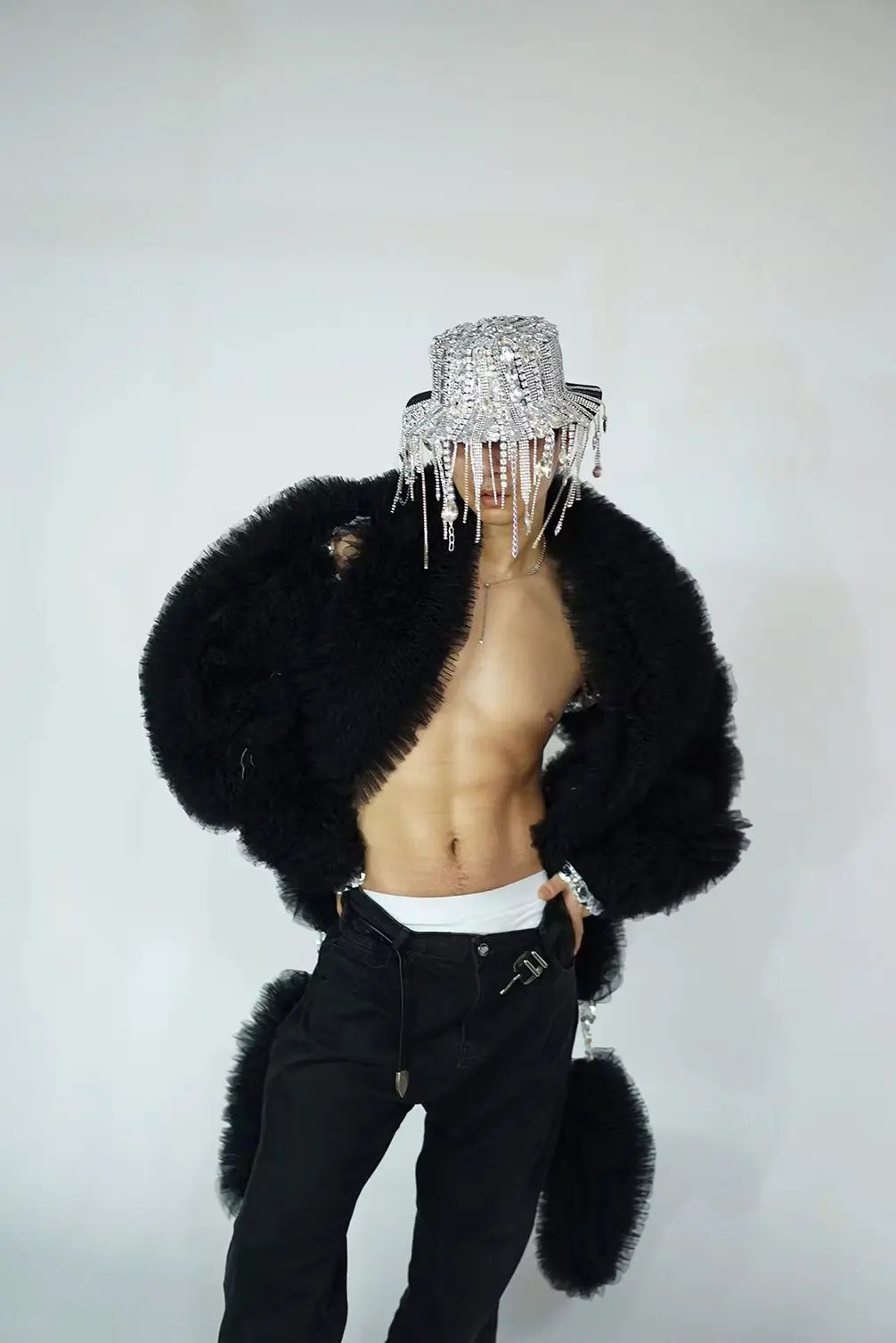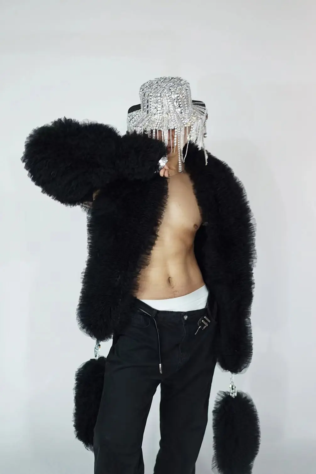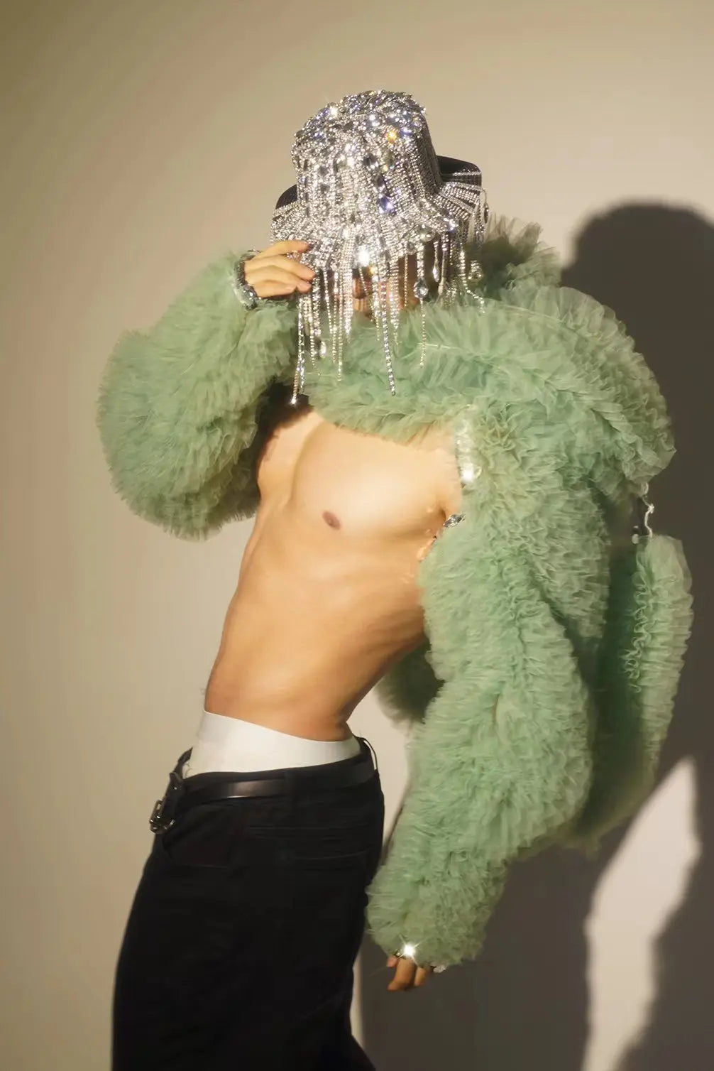 Glamorous Green Faux Fur Stage Jacket for Men and Women - Eye-Catching Performance Wear for DJs and Singers