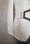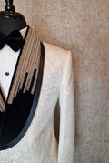 Elevate your wedding day or special occasion with this Fashion Wedding Tuxedo Jacket — a single-piece, statement-making blazer crafted from luxurious jacquard and finished with refined beading and a distinctive buckle detail. Designed for the modern groom who seeks elegance, edge, and impeccable tailoring, this handsome blazer combines texture, sparkle, and couture construction for a photo-ready look.