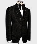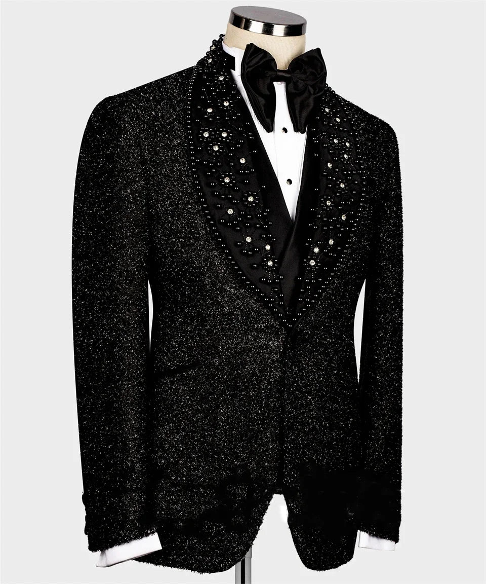 Get ready to dazzle in this glitter crystal wedding party suit for men, featuring a shawl lapel casual chic tuxedo blazer and matching pants. This 2-piece ensemble is perfect for proms, weddings, or any formal event where you want to make a statement. The glitter crystal detailing adds a touch of sophistication and glamour to the outfit, making it a standout choice for special occasions. Elevate your style with this chic and fashion-forward suit set that will have you looking sharp and stylish. Stand out from the crowd and show off your unique sense of fashion with this stylish and eye-catching costume homme.
