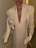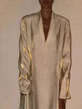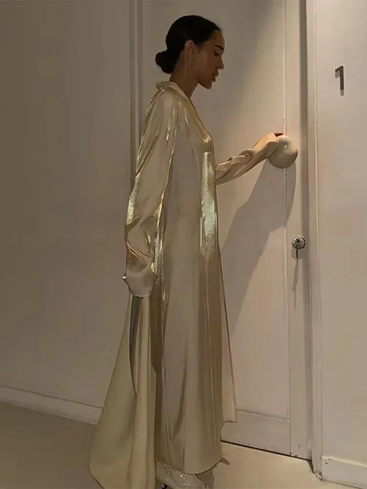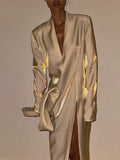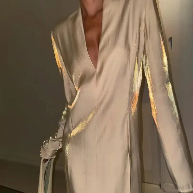 Glitter Party Long Dress Women Sexy V-neck High Split Female Dresses Spring Summer Street Elegant Full Sleeves Lady Robe