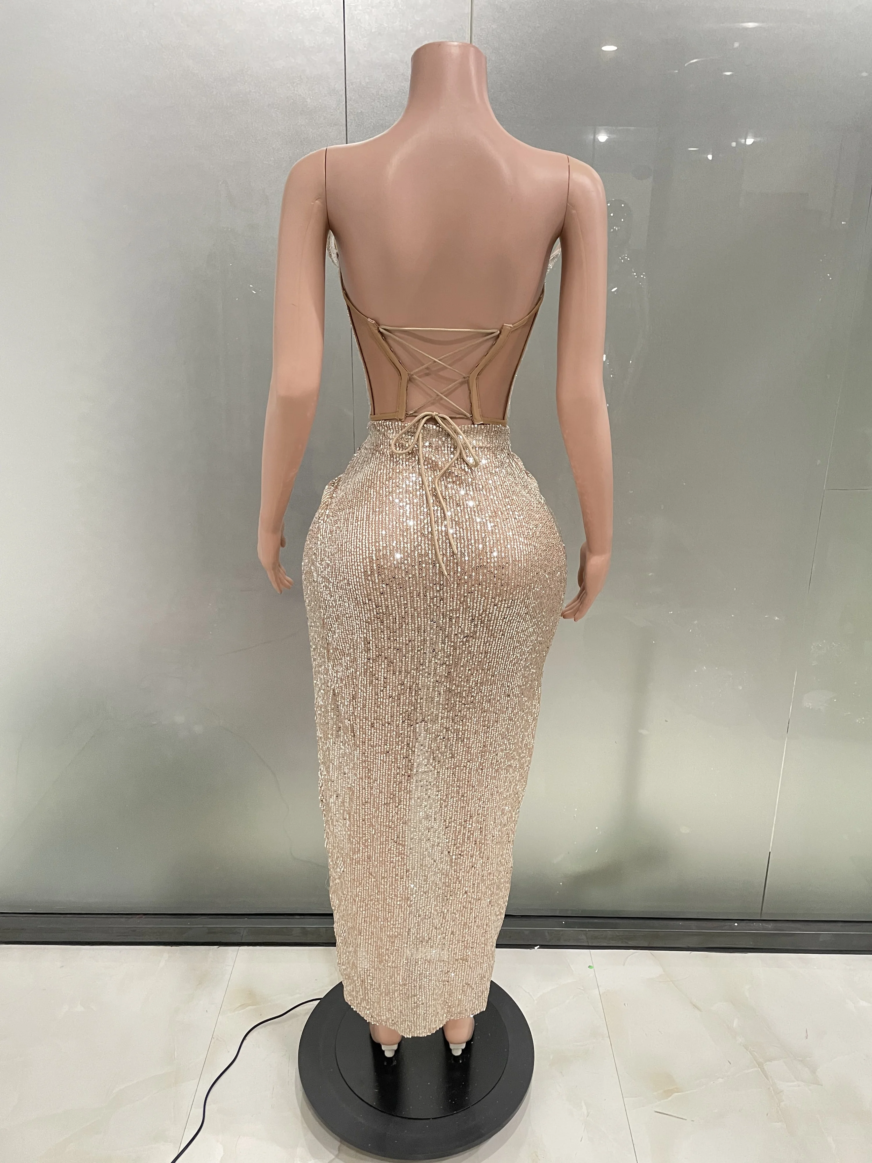 Glitter Rhinestone Bright Sequins Two Pieces Evening Party Dress Women Celebrate Festival Dancer Bar Nightclub Ds Dj Stage Wear