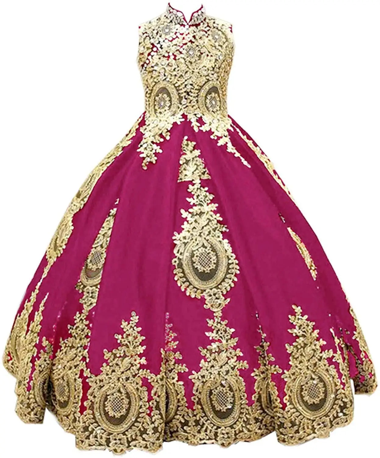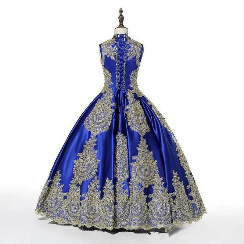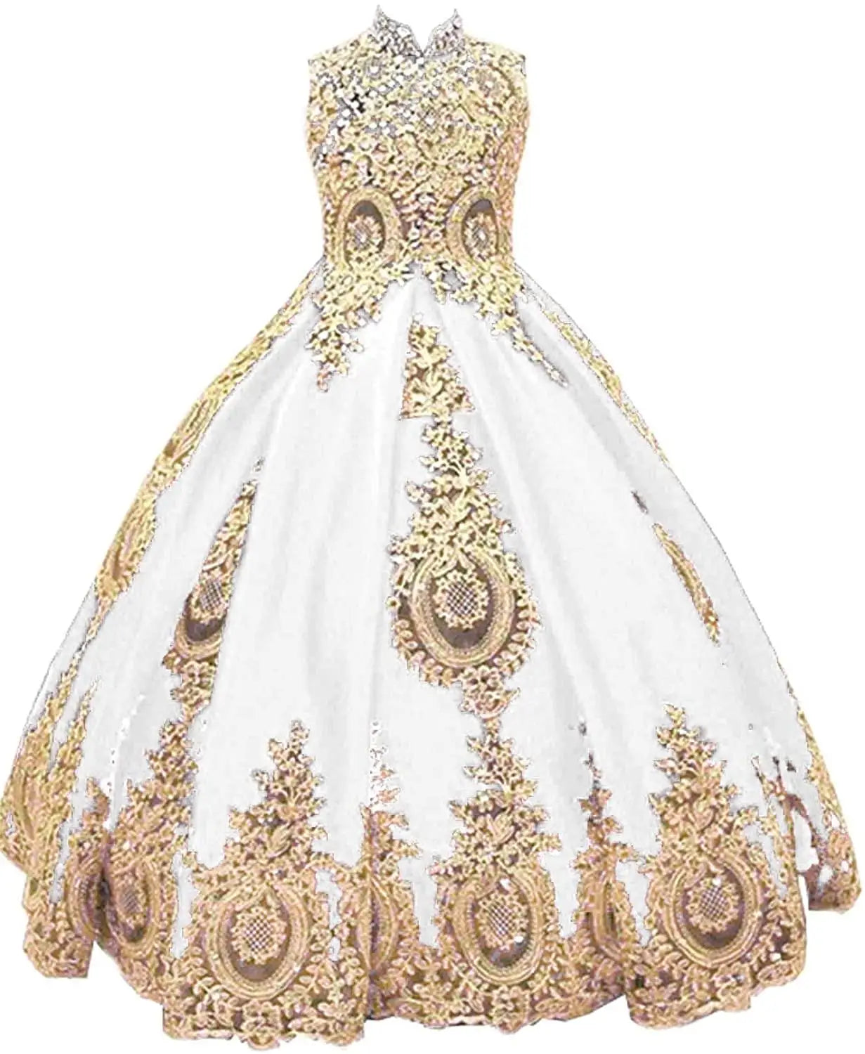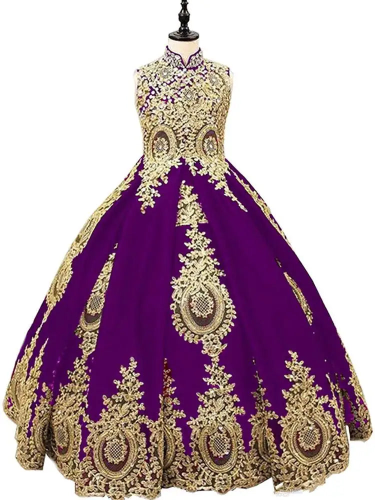 This stunning golden beaded flower girl dress is perfect for weddings, pageants, or holy communion ceremonies. The sleeveless design, lace appliques, and long gown length add an elegant and sophisticated touch, making it a standout choice for kids.