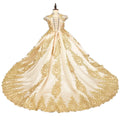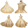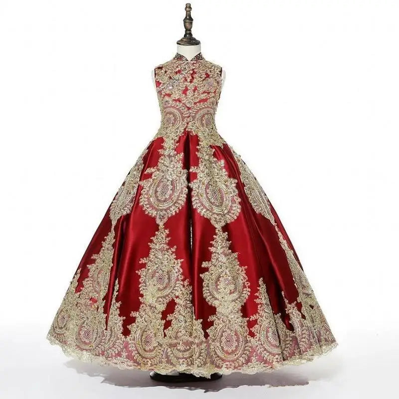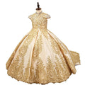 Girls Luxury Gown Elegant Golden Embroidered Princess Dress with Train