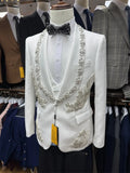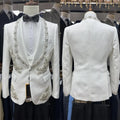 Gorgeous Men Suits Tailor-Made Crystal 2 Pieces Shawl Lapel Applique Jacquard Jacket Blazer One-Button Customized Coat Pants
