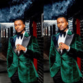 Green Velvet Men Suits Wear Wedding Blazer Tuxedos Gold Clothes for Groom Prom Coat One Jacket