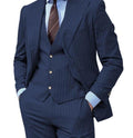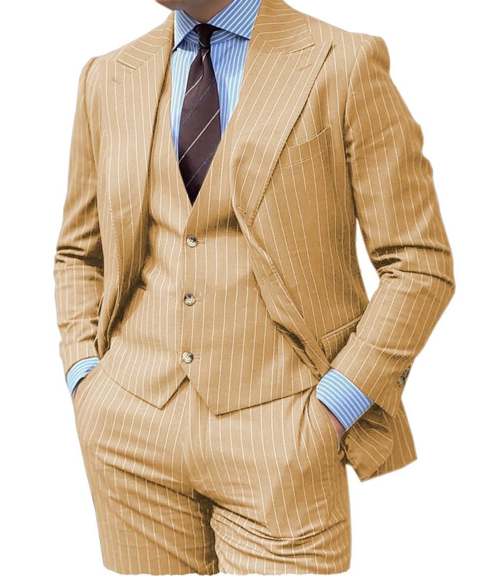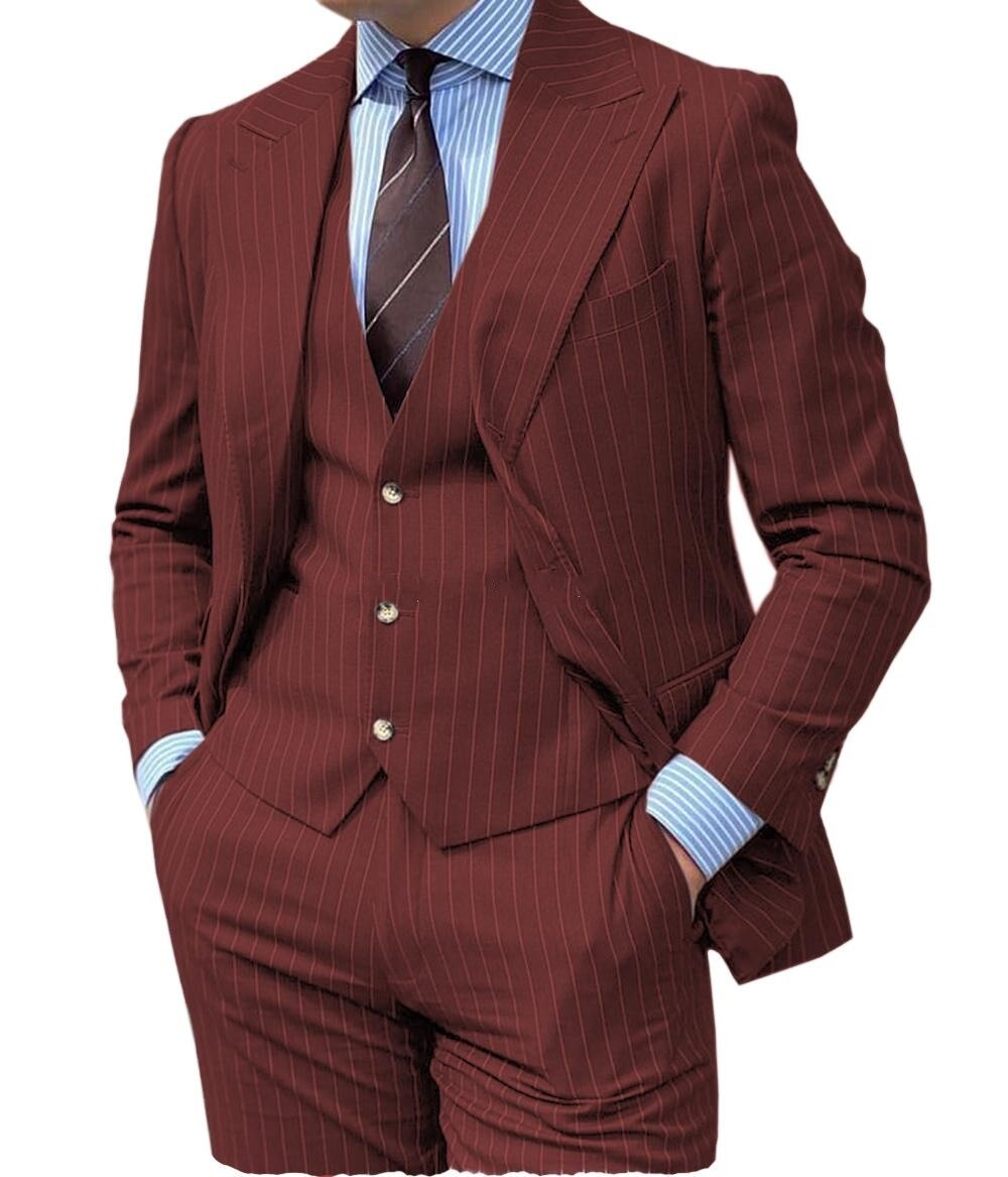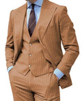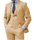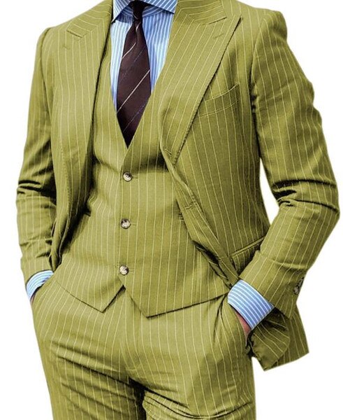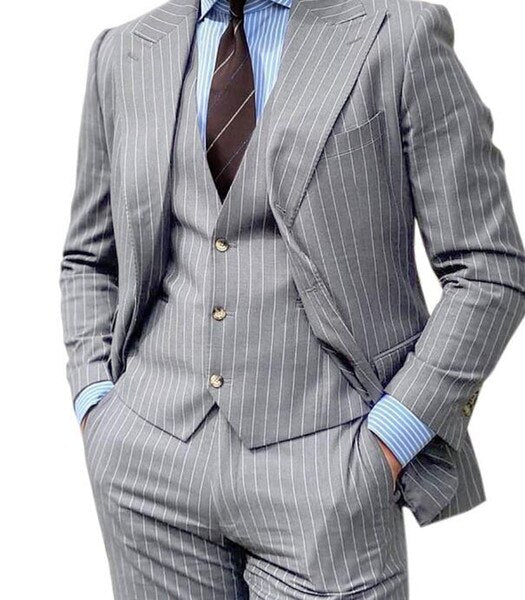 Grey Stripe Design Men Suits Peaked Lapel Formal Business Man Blazer 3 Pieces Groom Tuxedo Classic Fit Outfit