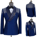 Handmade Beading Men Jacket Beaded Diamonds Double Breasted Prom Wedding Tuxedos Groom Wear Plus Size Costume Homme One Piece