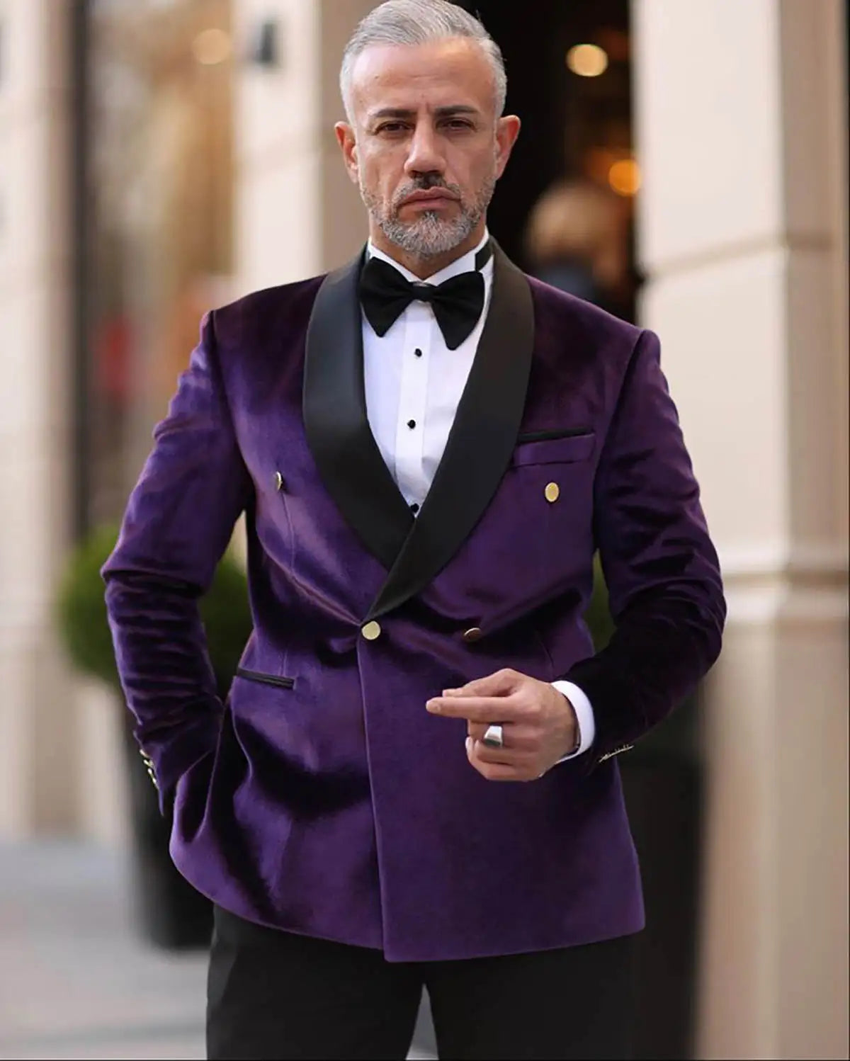 Handsome Men Suits Tailored 2-Piece Velvet Blazer Black Pants Shawl Lapel Button Customized Plus Size Tuxedo Trajes Para Hombre