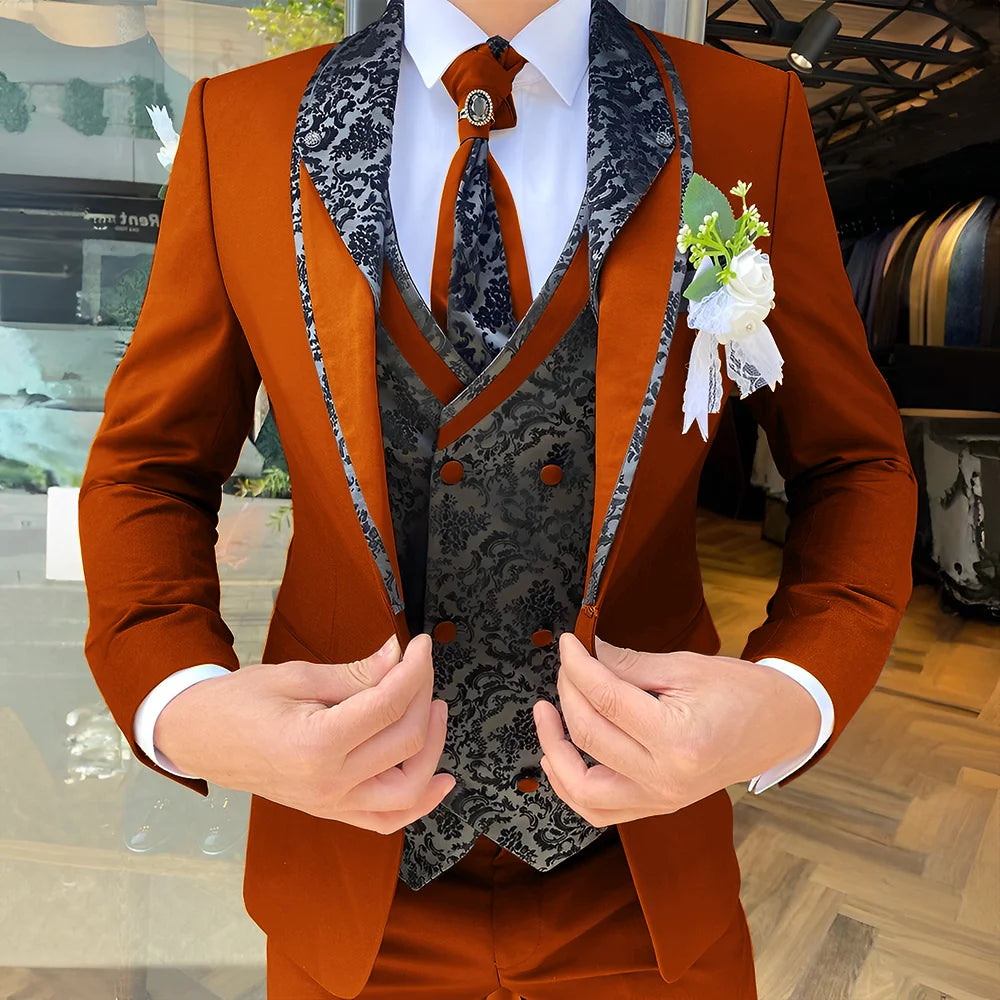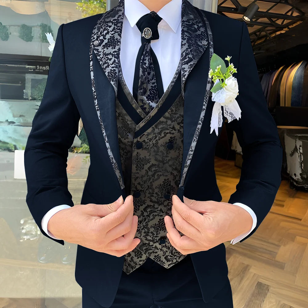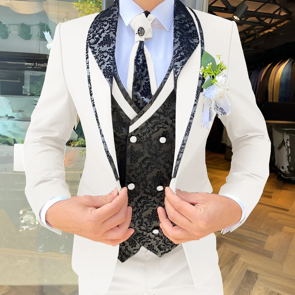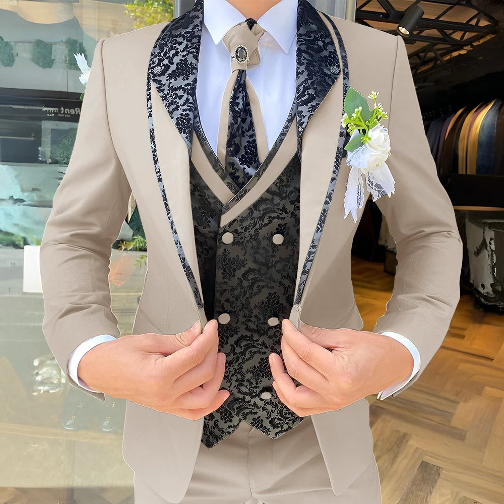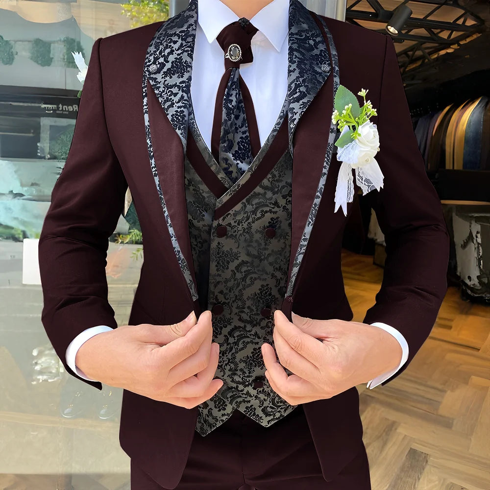 Handsome Men's Suit 3-piece Elegant Groom Wedding Tuxedo Jacket Pants Vest Customized Formal Blazer for Male
