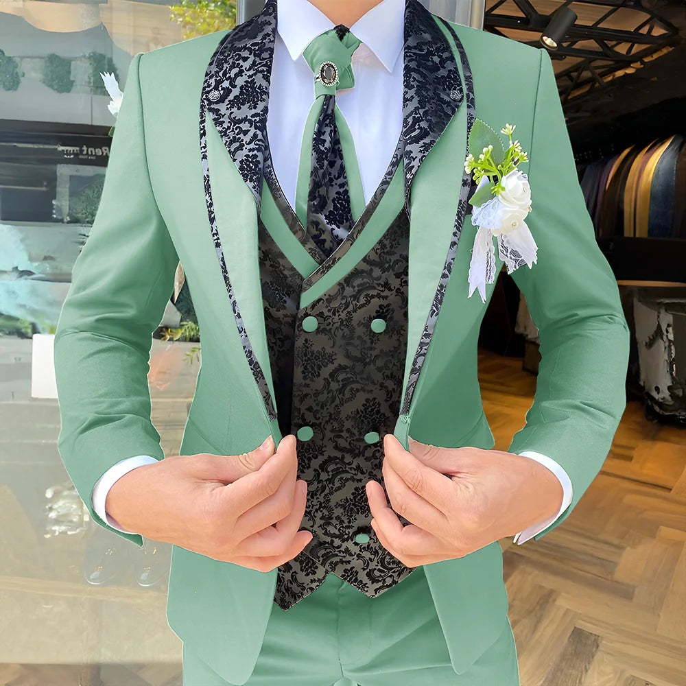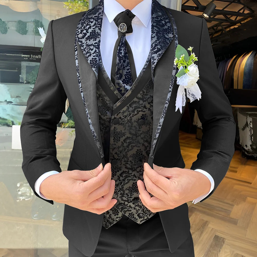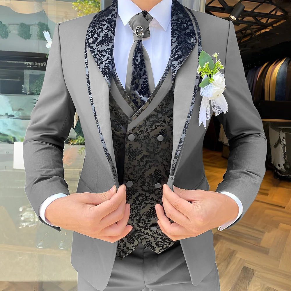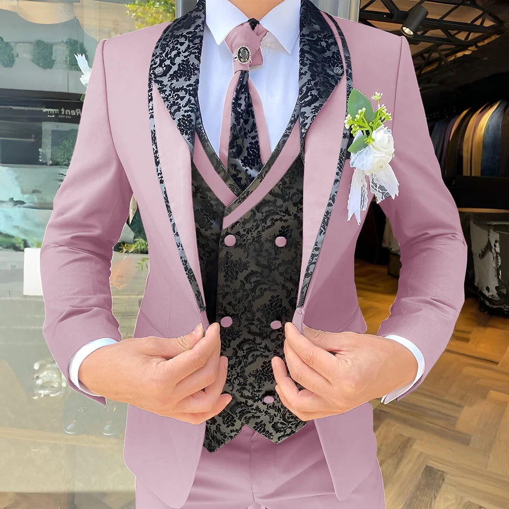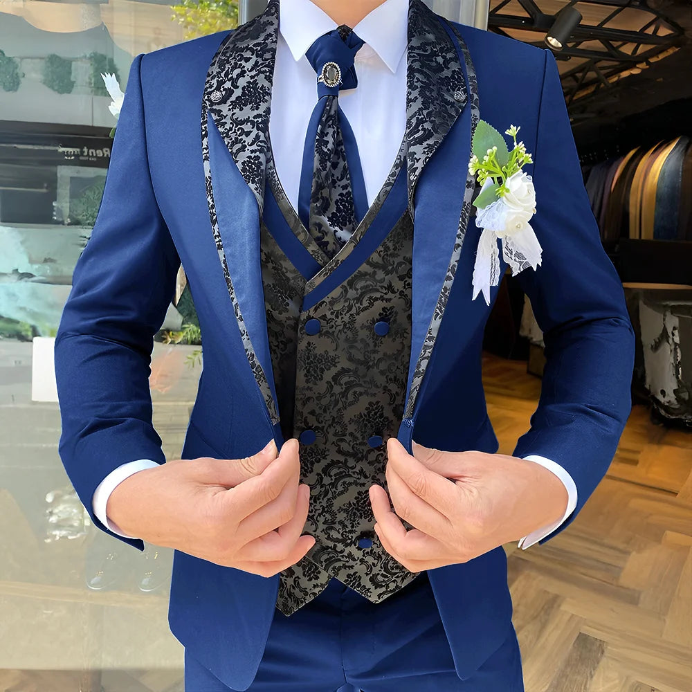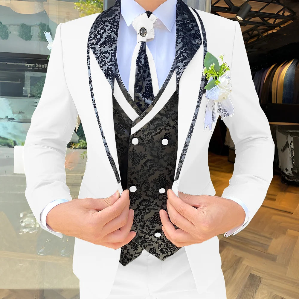 Handsome Men's Suit 3-piece Elegant Groom Wedding Tuxedo Jacket Pants Vest Customized Formal Blazer for Male