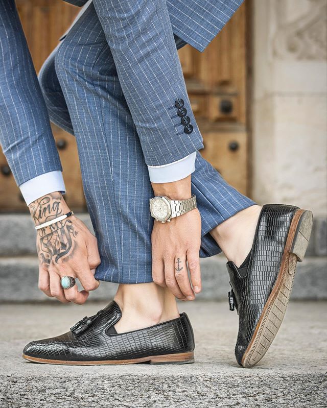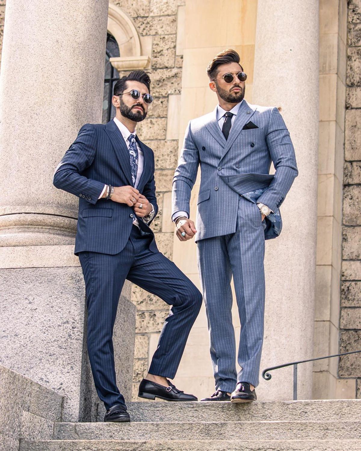 Haze Blue Men Suits Two Pieces Peaked Lapel Men suit Stripe Browm Cuotom Made Wedding Tuxedos