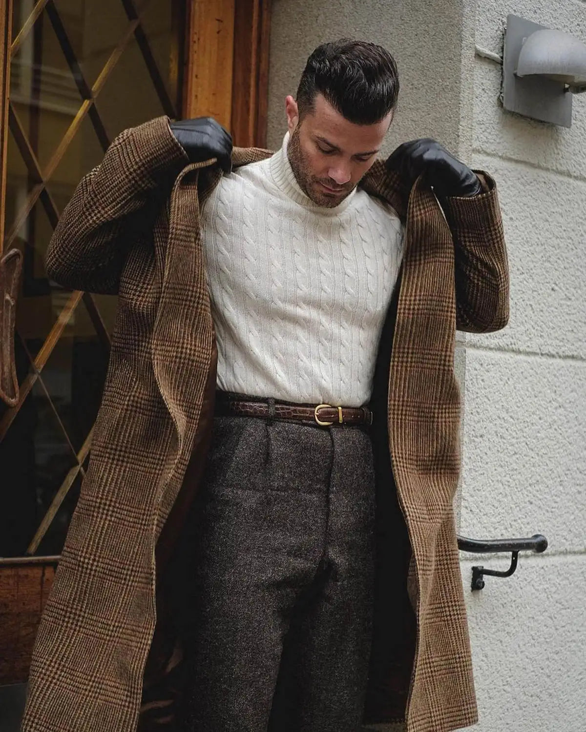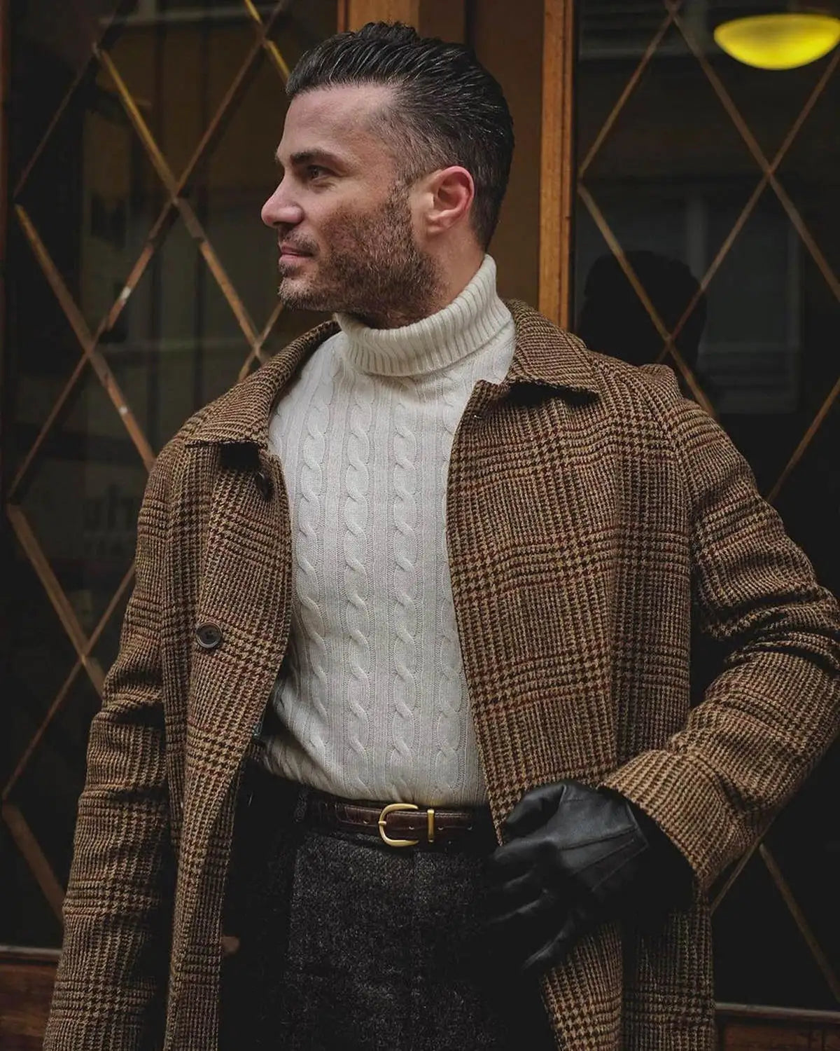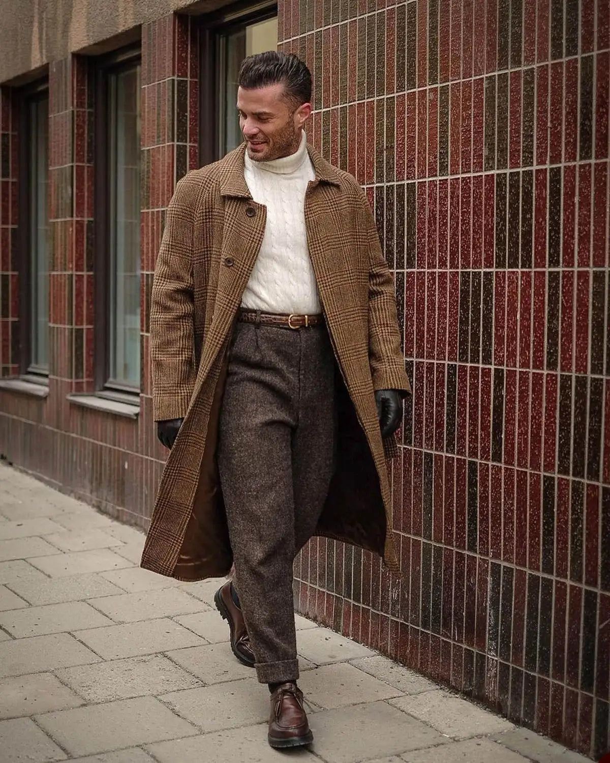 A refined long overcoat-style blazer tailored for autumn weddings, business events and evening parties. This single-breasted herringbone woolen coat blends classic menswear texture with formal tuxedo details for a versatile, elegant outerpiece designed for grooms and style-conscious professionals.