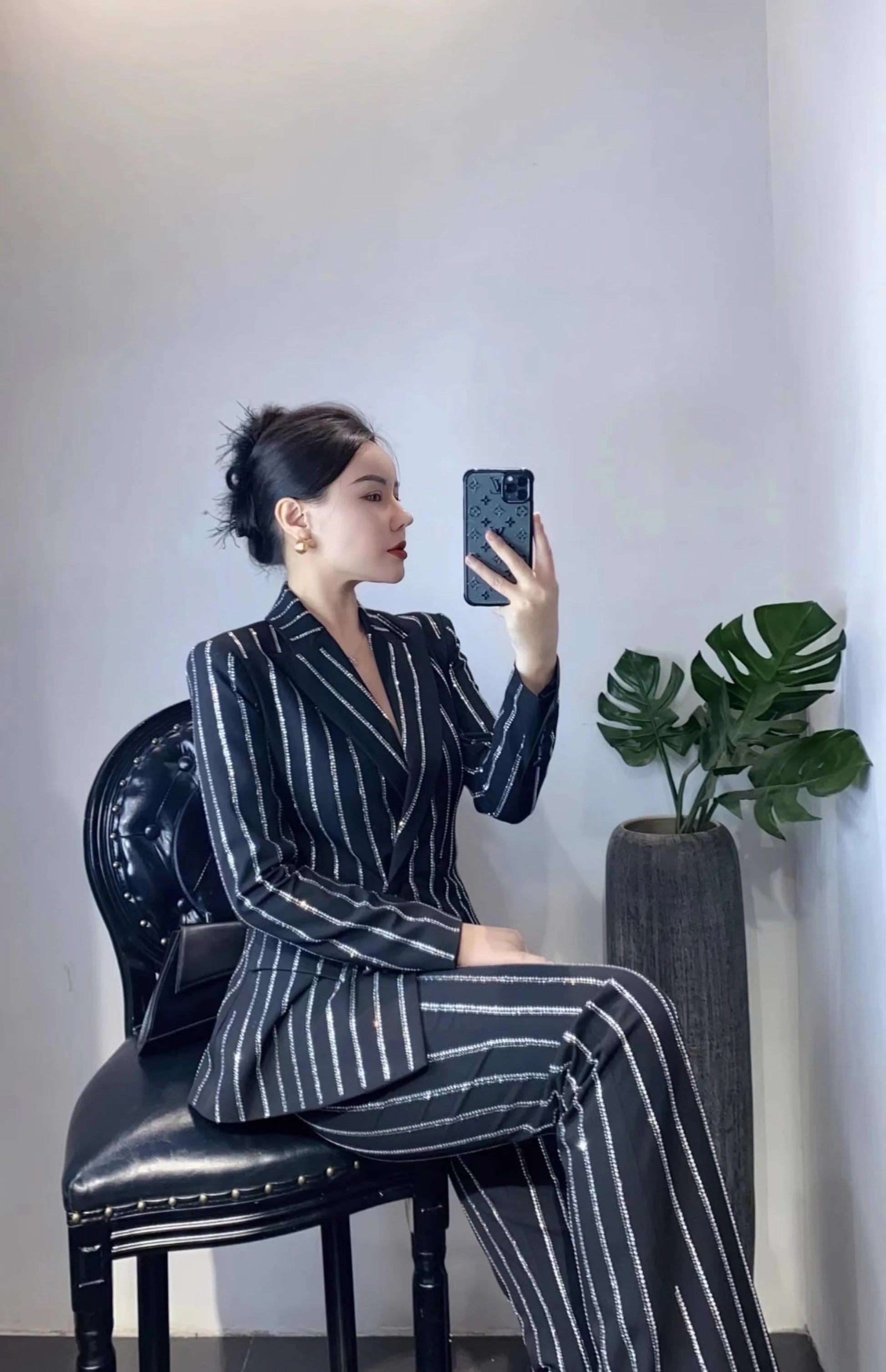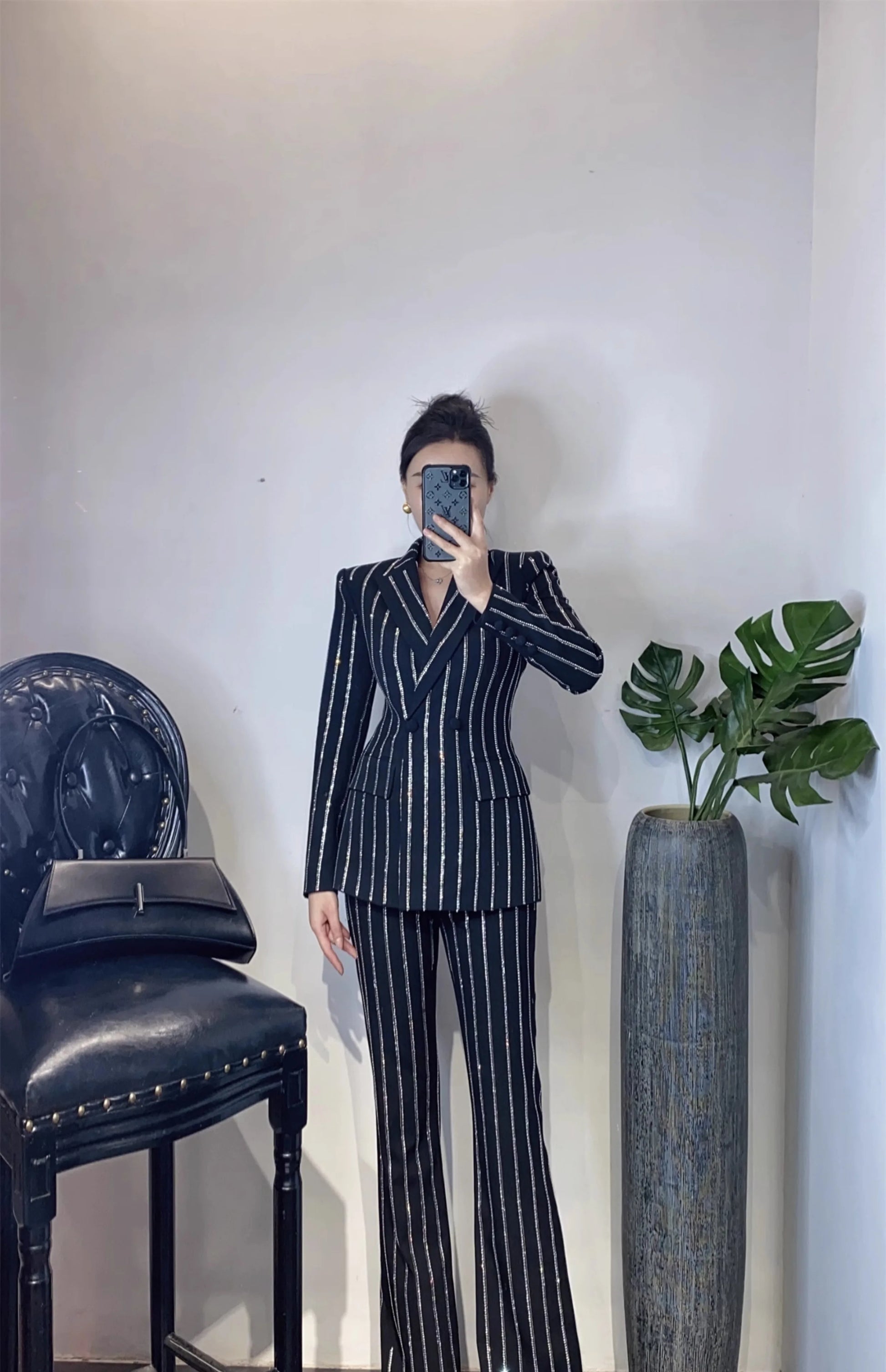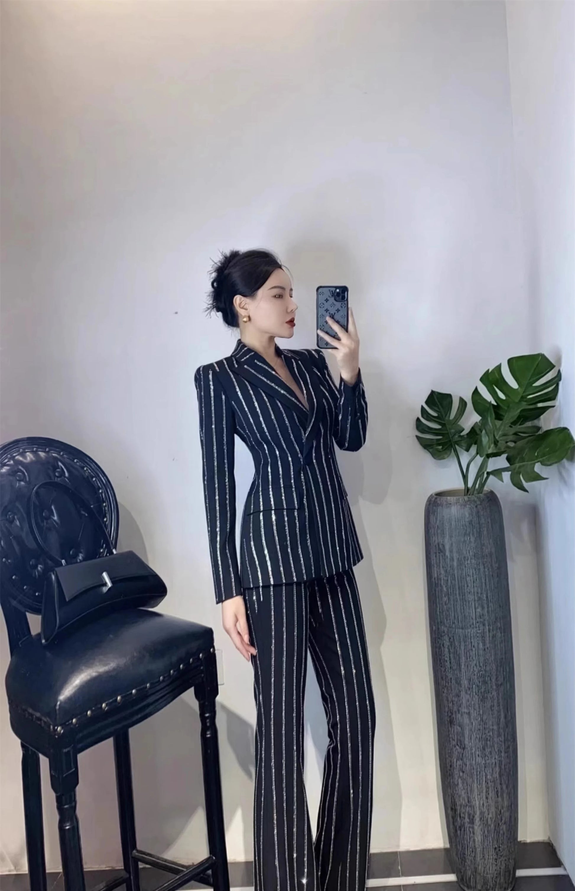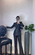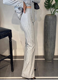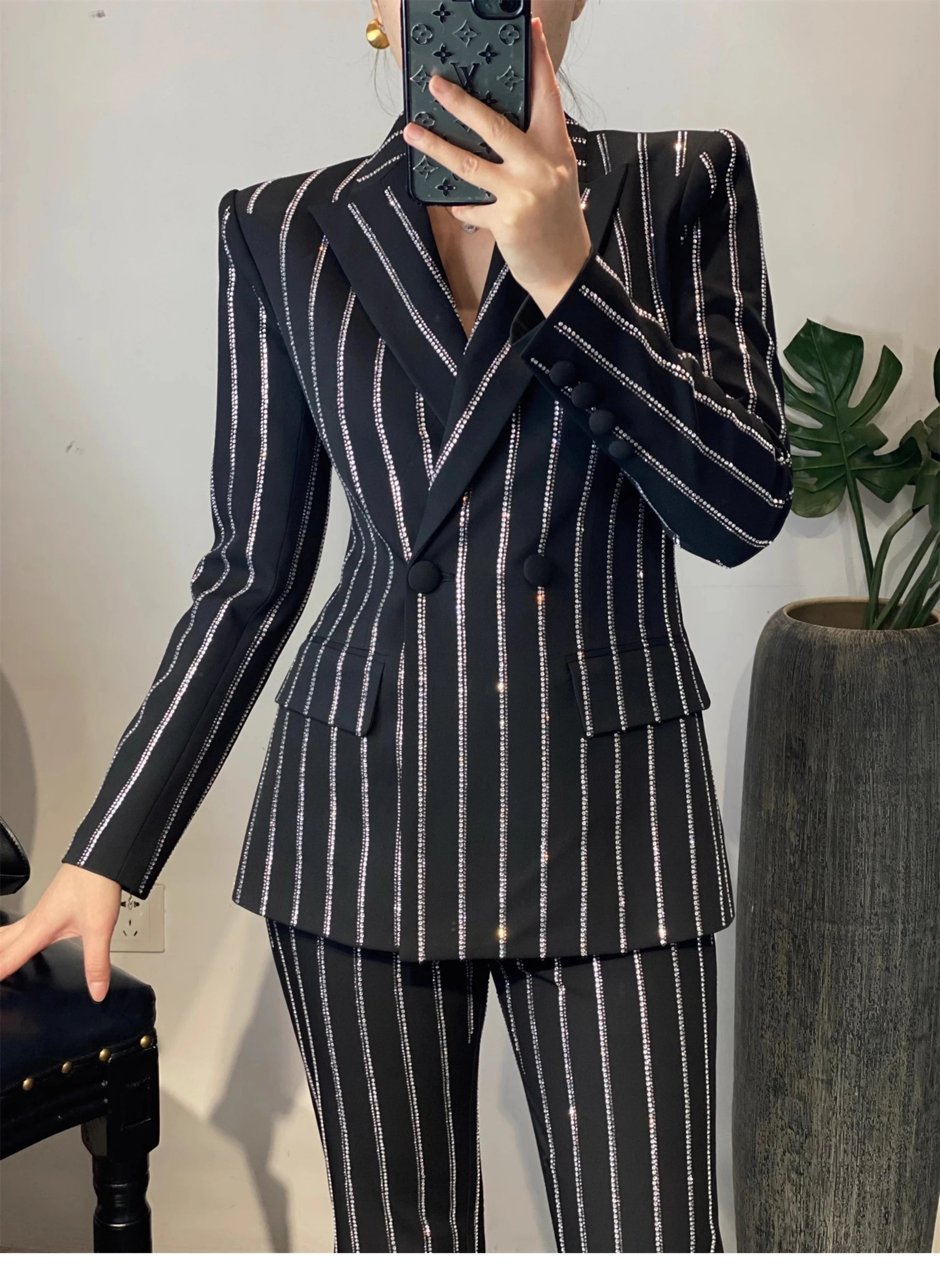 High-End Grijze Zware Lndustrie Hot Boorpak VrouwenElegante DubbeleRij Knopen Jas Wijde Pijpen Broek Trajes Elegantes Para Mujer