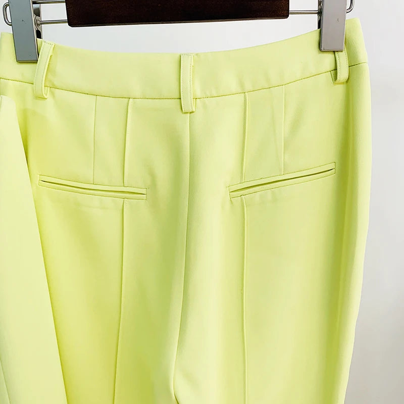Newest S/S Designer Runway Suit Set Women Single Button Slim Fit Blazer Flare Pants Suit Two Pieces