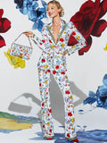 Fashion Designer Suit Set Women's Fashion Single Button Printed Casual Blazer Pants Set