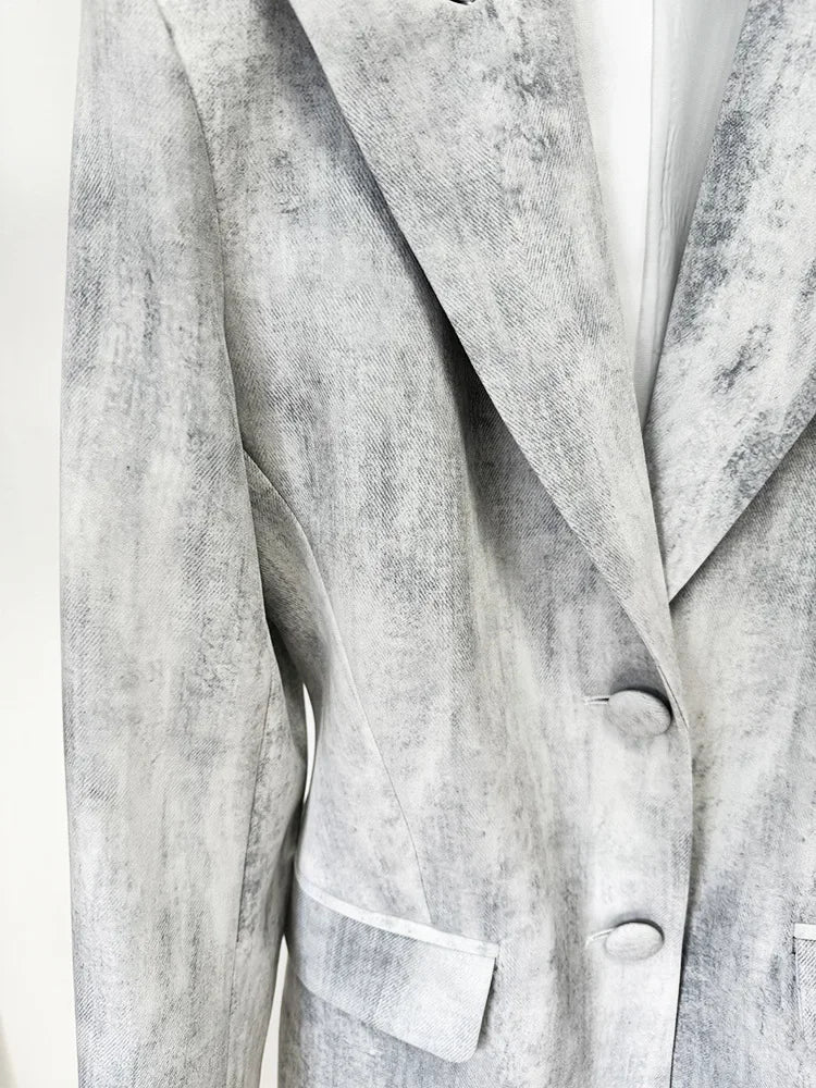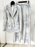 Newest Fashion Designer Suit Set Women's Tie Dye Printed Slim Mid Length Blazer Long Pants Set 2PCS