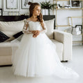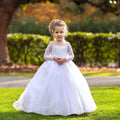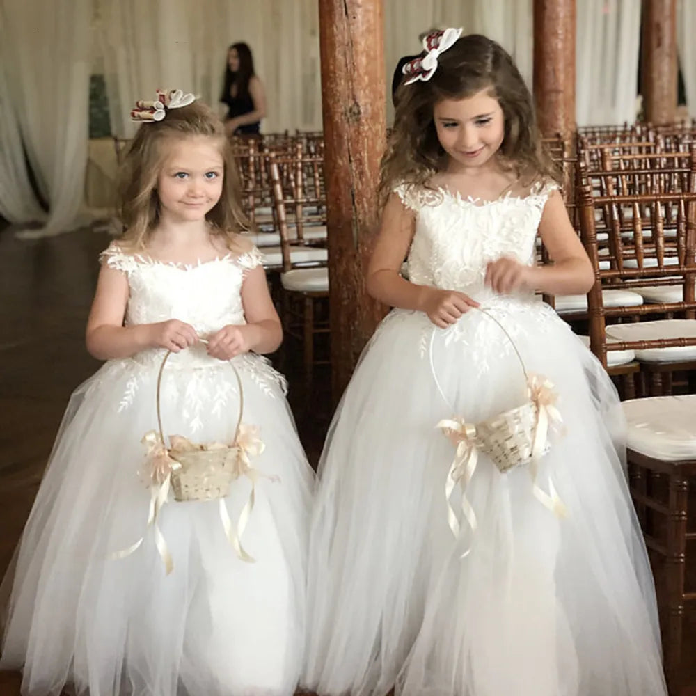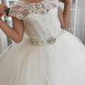 Girls White Lace and Tulle Flower Girl Dress with Cap Sleeves