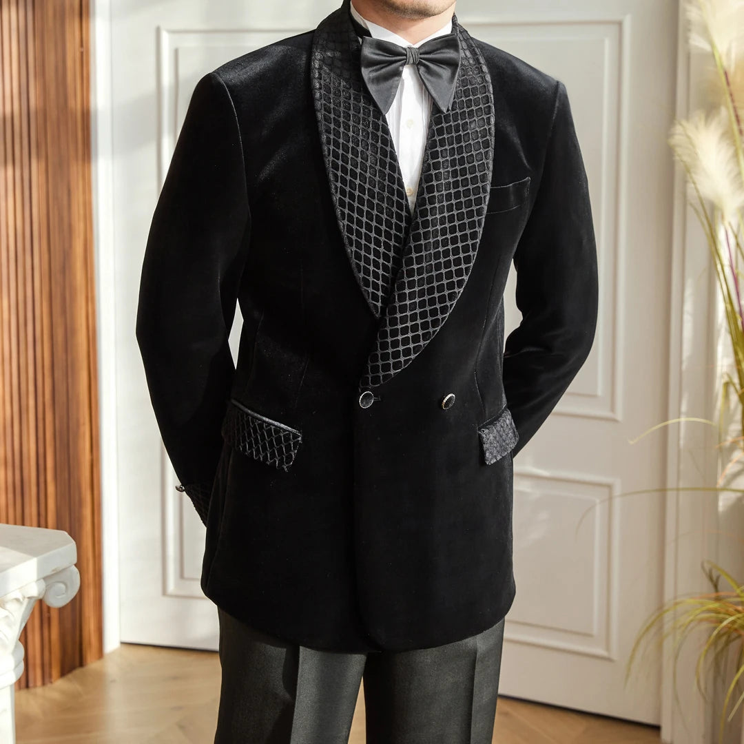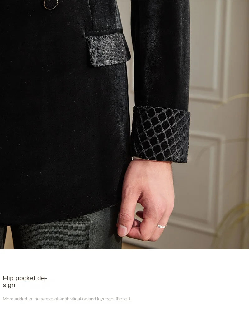 Homemade Autumn and Winter Small Capital Banquet Shade Collar Velvet Suit Gentry Fashion Trendy Suit Jacket Men