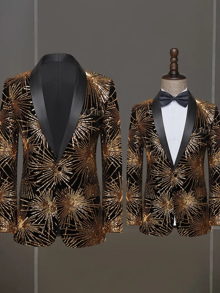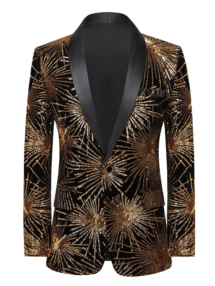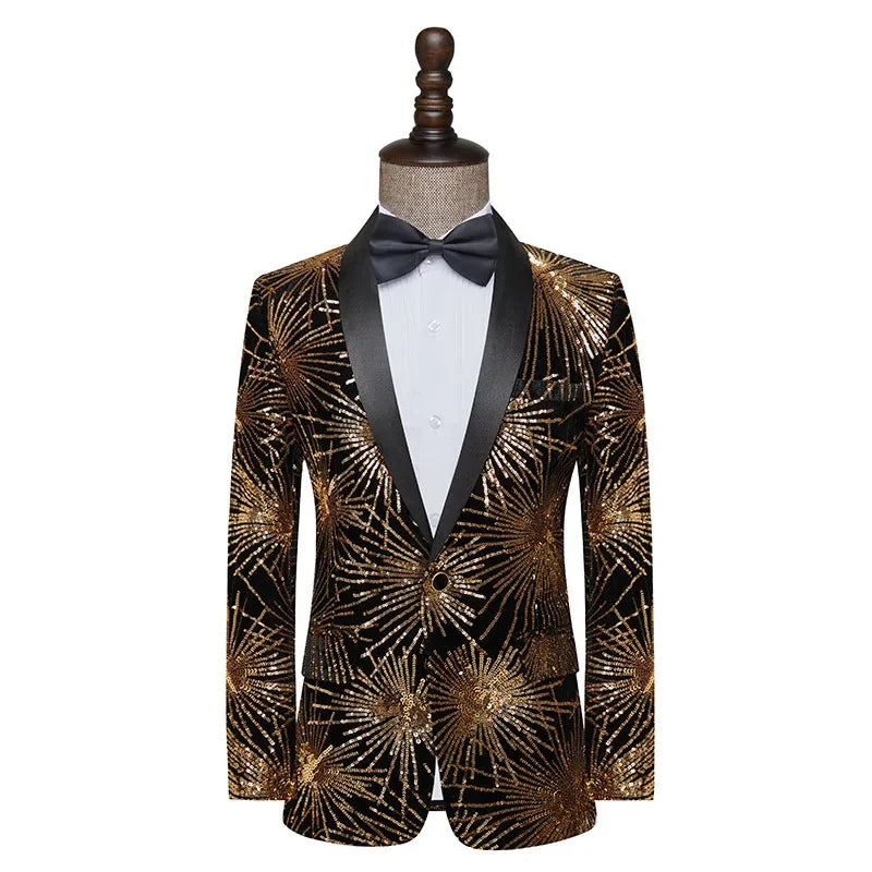 Men's Gold Sequin Performance Blazer for Stage Shows and Formal Events