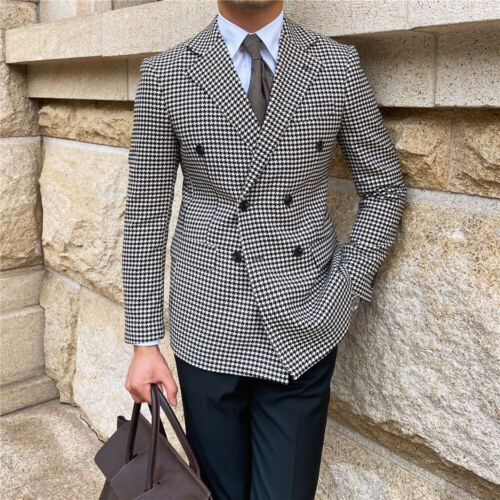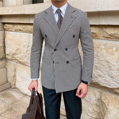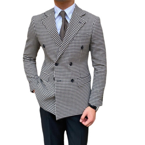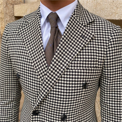 Houndstooth Custom Made Groom Tuxedo Notch Lapel Double Breasted Men Suit Prom Wedding men Suits Jacket
