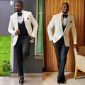 Ivory Shawl Lapel Groom Man SuitsTuxedos Men Wedding Dress Man Jacket Blazer Prom Dinner 3 Piece Suit(Jacket+Pants+Tie+Vest)