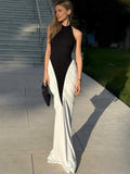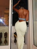 Classic Elegant Women Maxi Dress Panelled Shirring Sexy Halter Backless Sheath Long Robe Mujer Elegant Festival Vestidos