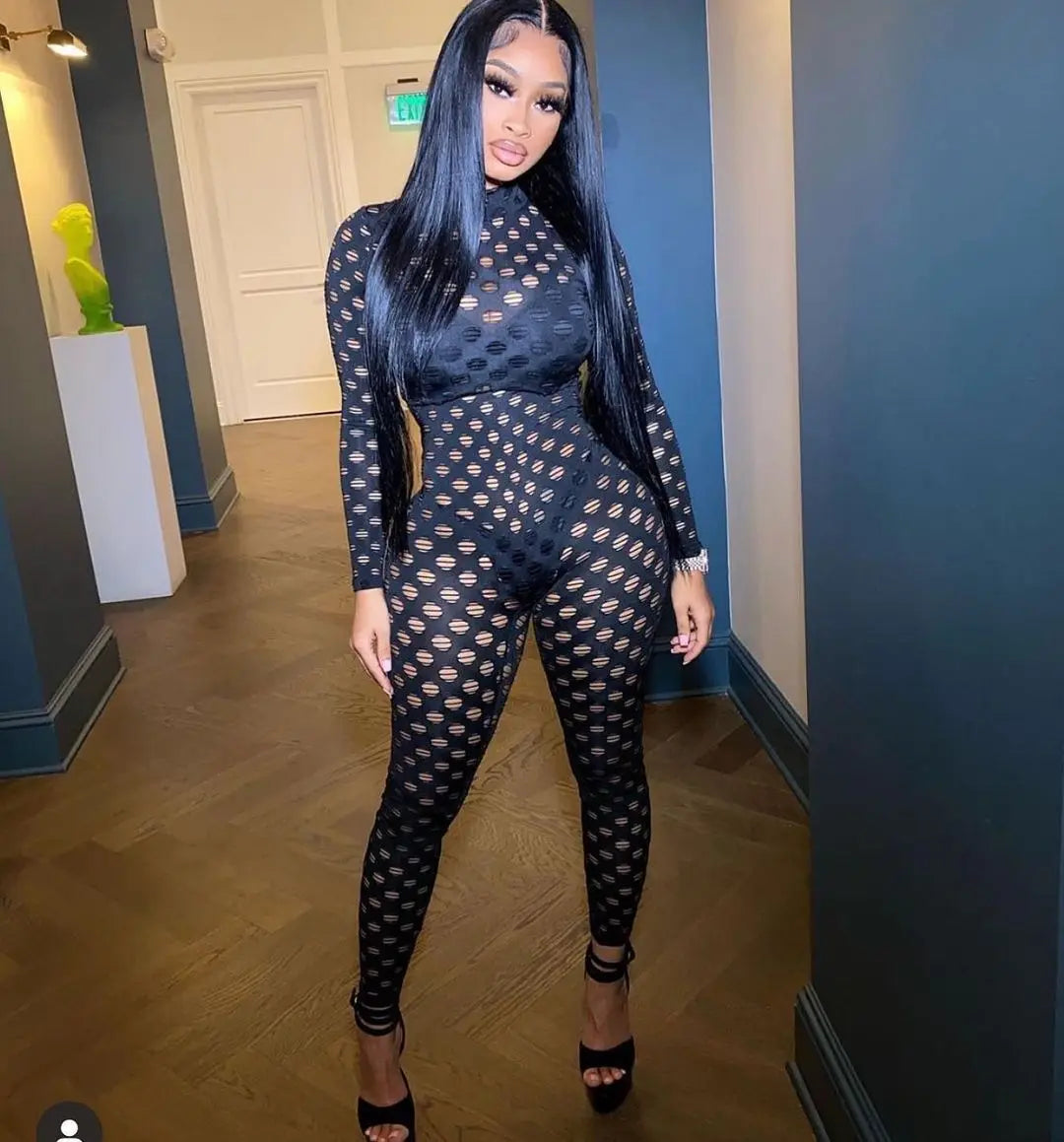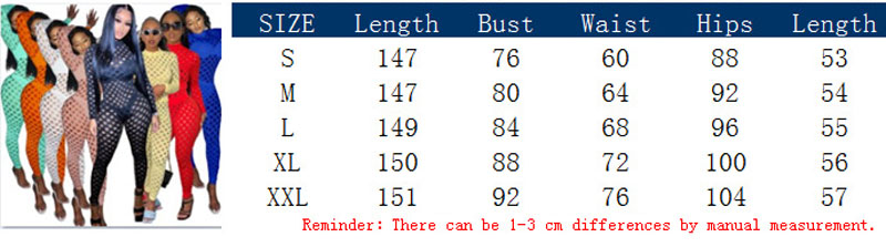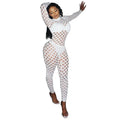 Knitted Jumpsuits Woman Skinny Nightclub Sexy Mesh Jumpsuitt Long Sleeve Jumpsuits Female Summer Stretch Party Clubwear
