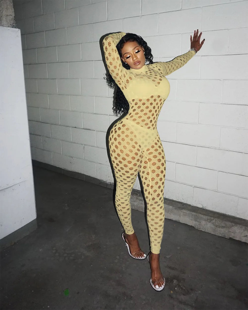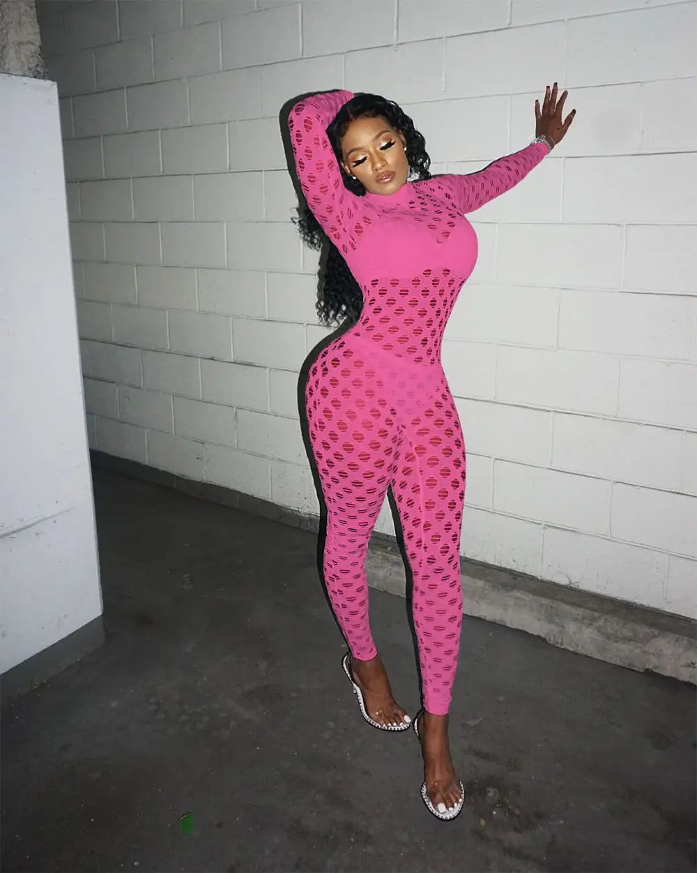 Step out in style with this skinny knitted jumpsuit for women, perfect for nightclub and summer parties. Featuring long sleeves and sexy mesh detailing, this stretchy one-piece hugs your curves for a flattering fit. Ideal for clubwear or special events, this jumpsuit combines comfort with an alluring, fashionable look.