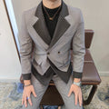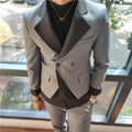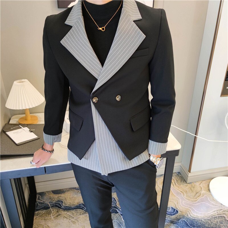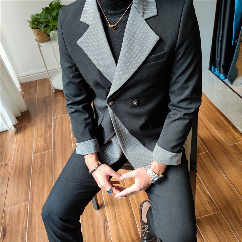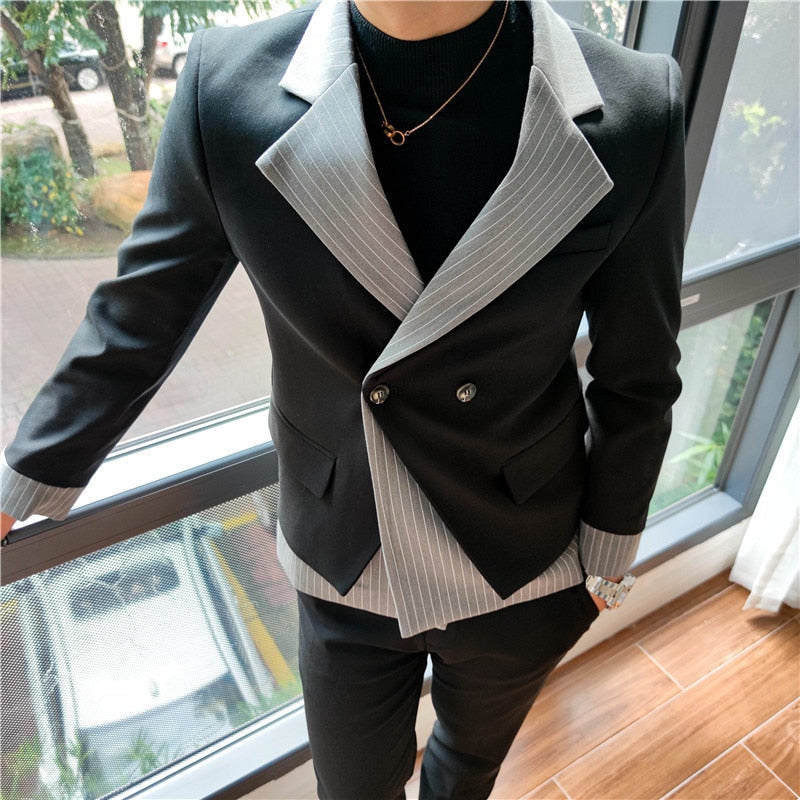 Korean Patchwork Suit 2 Piece Suit Blazer Men Suit Set Slim Fit Tuxedo Suit Blazer Suit Men Stylish Blazer Stage Party Club