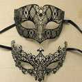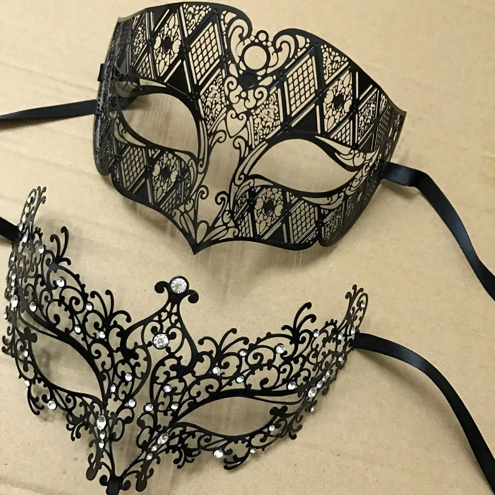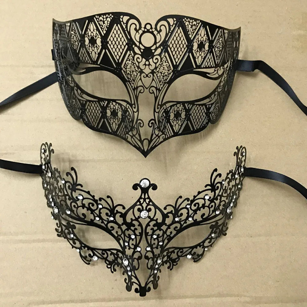 Laser Cut Couple Lovers Venetian Masquerade Masks Black Metal Masks Halloween Party Shows Cosplay Sexy Wedding Mask Set