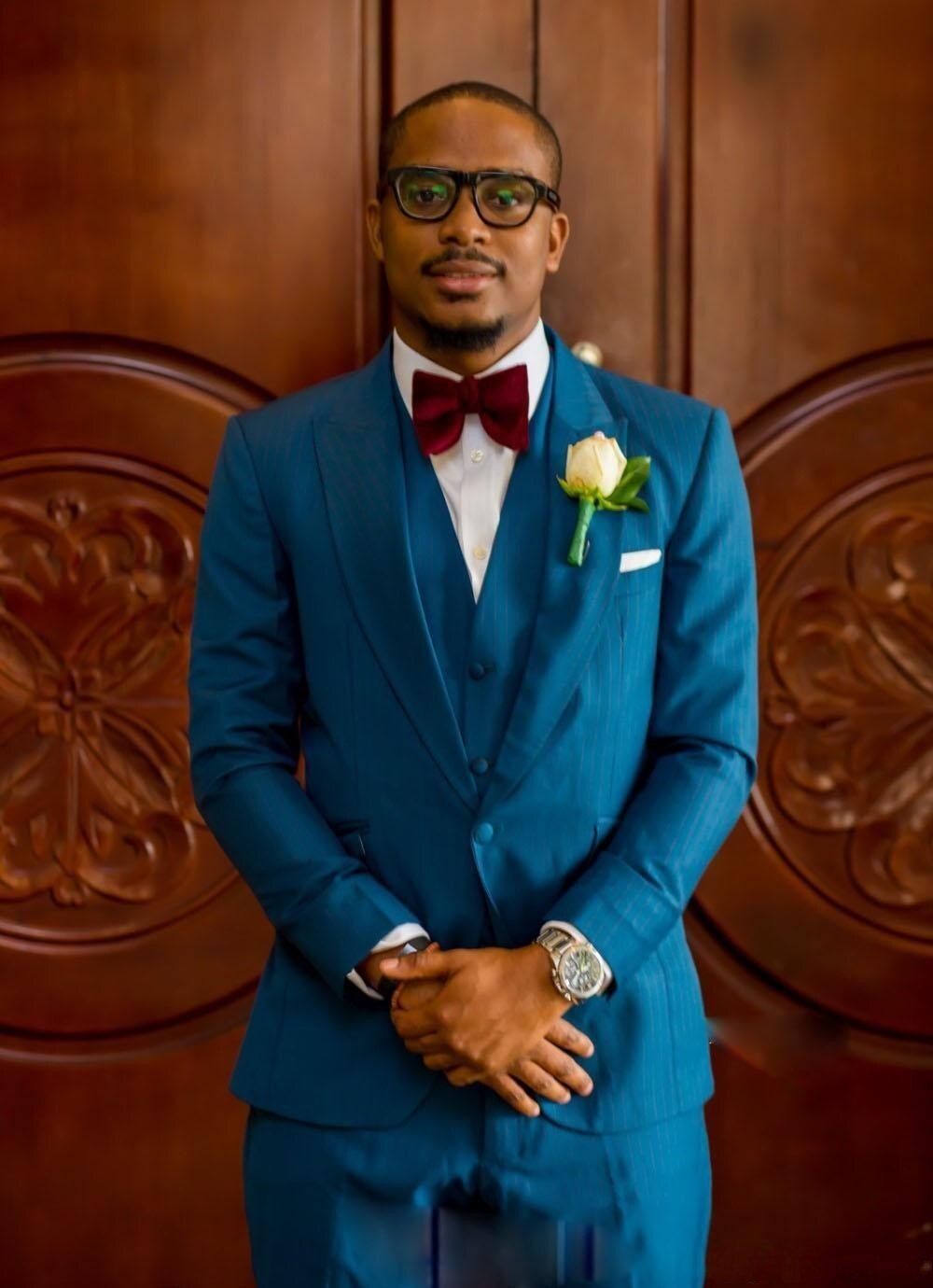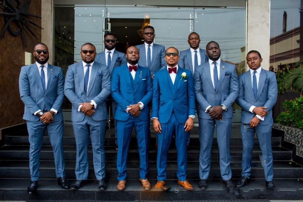 Blue Groom Tuxedos Peak Lapel Men Wedding Tuxedos Man Jacket Blazer 3 Piece Suit(Jacket+Pants+Vest+Tie)