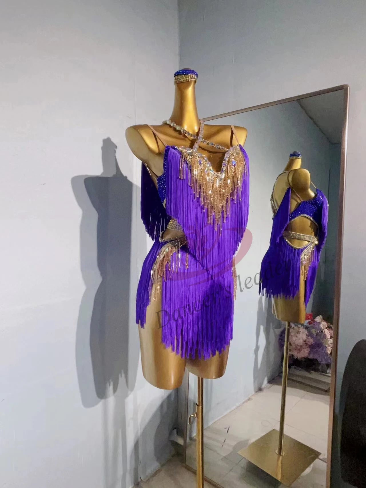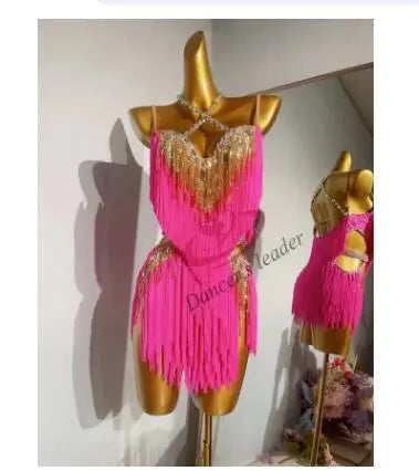 Latin Dance Competition Women's Clothing Children's High End Customized Strap Tassel Cha Tango Show Blackpool Dress
