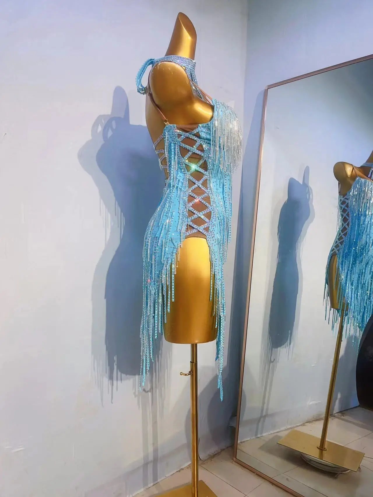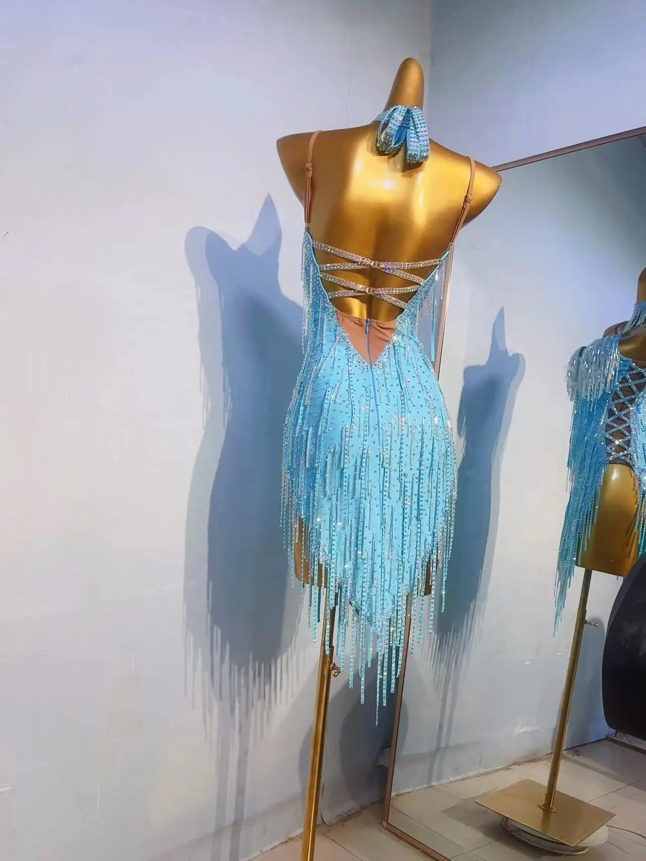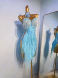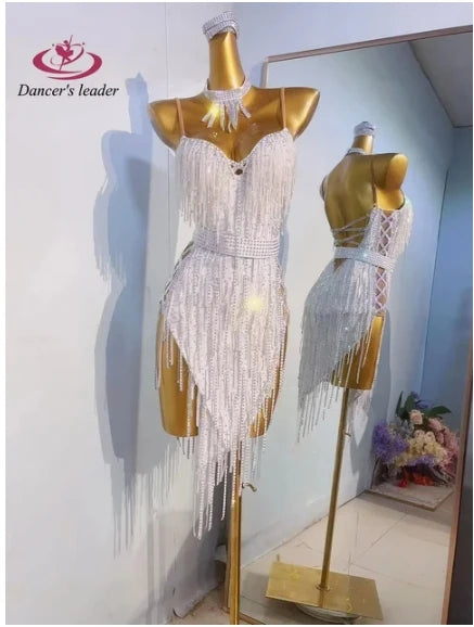 Latin Dance Dress for Women's High End Customized Size Chacha Tango Children's Performance Competition Thick Tassel Dress