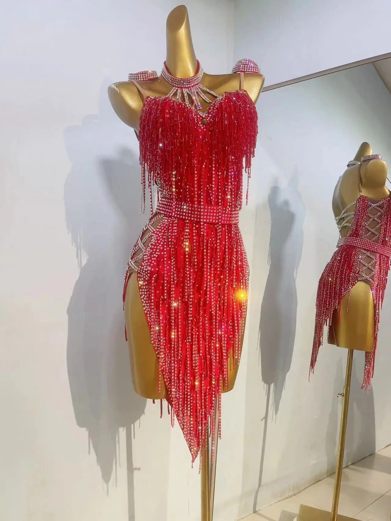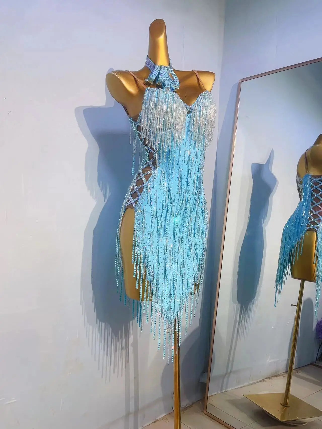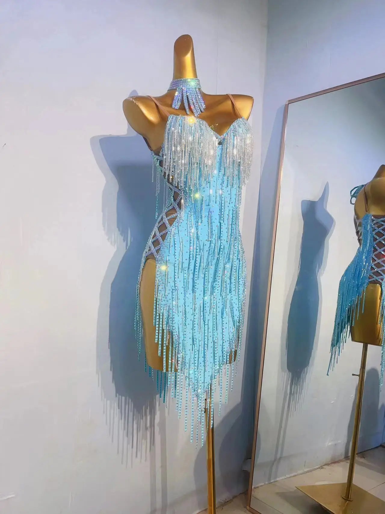 Latin Dance Dress for Women's High End Customized Size Chacha Tango Children's Performance Competition Thick Tassel Dress