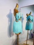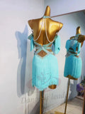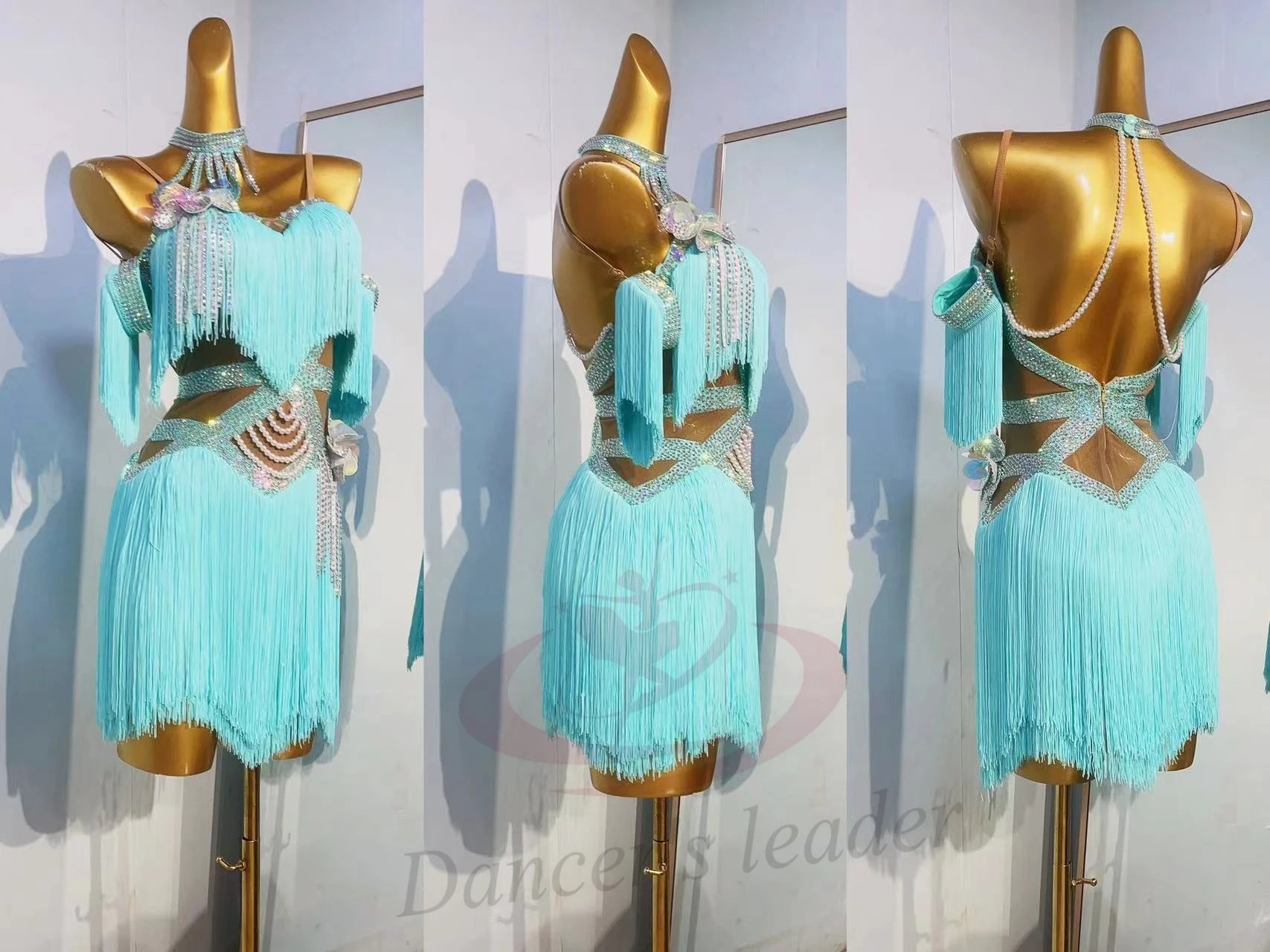This high-end, custom Latin dance dress is crafted for professional Samba performers who demand maximum stage impact, secure fit, and freedom of movement. The design centers on a dramatic full-tassel skirt and a glittering diamond-studded suspender (strap) system that frames the torso while providing reliable support during intense choreography.