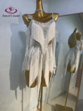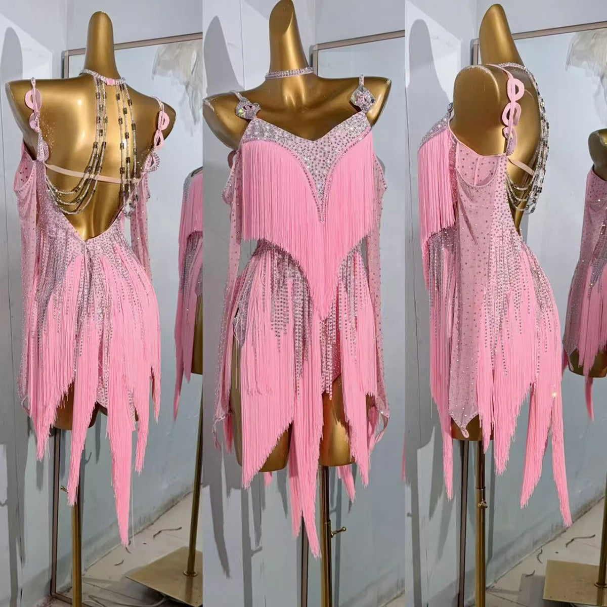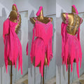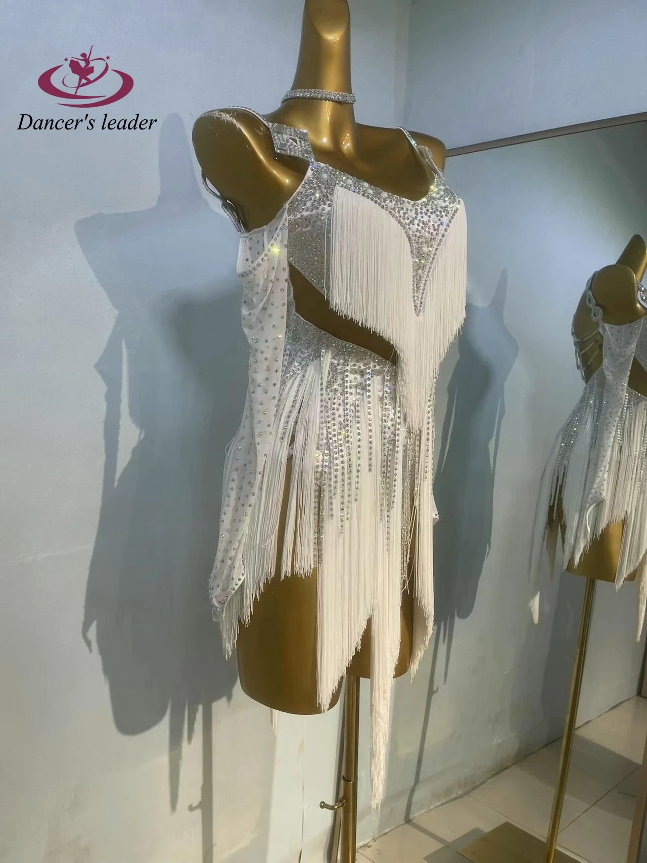 Latin Dance Rhinestone Women's High-end Custom Tailcoat Tassel Suspender Design Samba Performance Dress