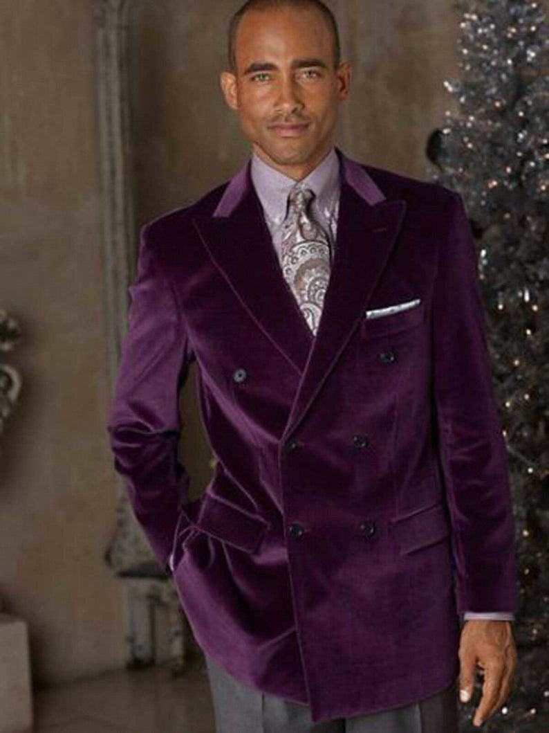 Leisure Pruple Velvet men Coat Suits Beach Groom Best Man Jacket Party Prom Wedding Blazer Tuxedos Custom Made One Piece