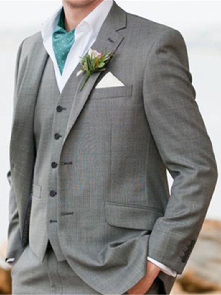Light Gray Wool Men Suits For Wedding 3pcs Jacket+Pants+Vest Fashion Custom Made Groom Party Wear Blazer Trousers