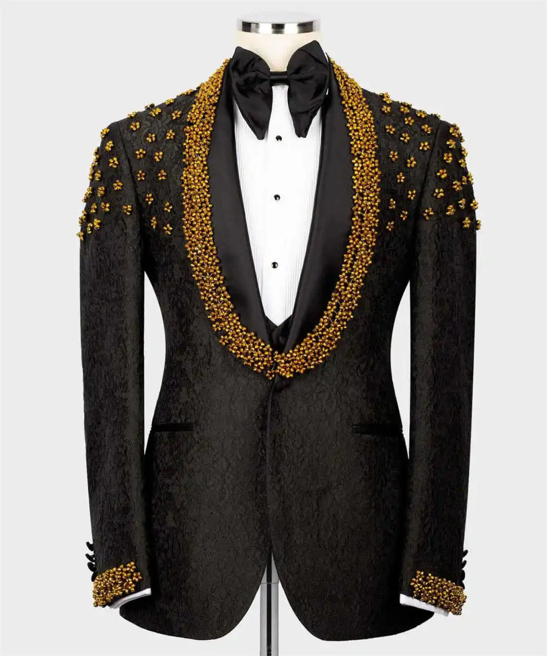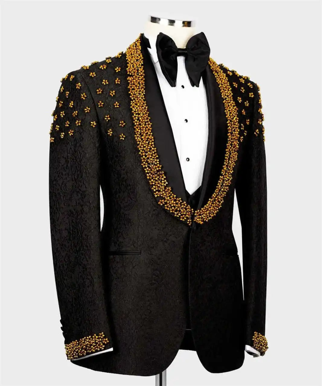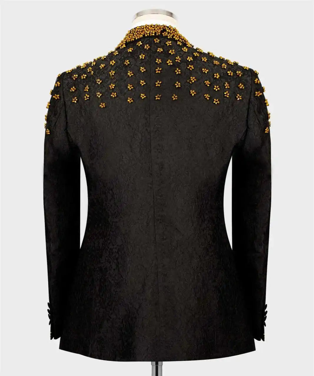 Make a statement without saying a word in the Luxurious Beaded Men's Coat: an exquisite, single-breasted tuxedo blazer crafted for grooms, executives, and anyone who wants refined glamour for formal evenings and high-profile events. This piece focuses on the jacket alone — designed to be the centerpiece of your ensemble, whether paired with matching trousers, tailored slacks, or dark denim for elevated smart-casual looks. Meticulous beadwork, a plush shawl lapel, and superior tailoring combine to deliver a jacket that reads both timeless and unmistakably modern.