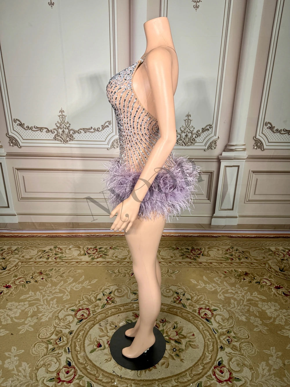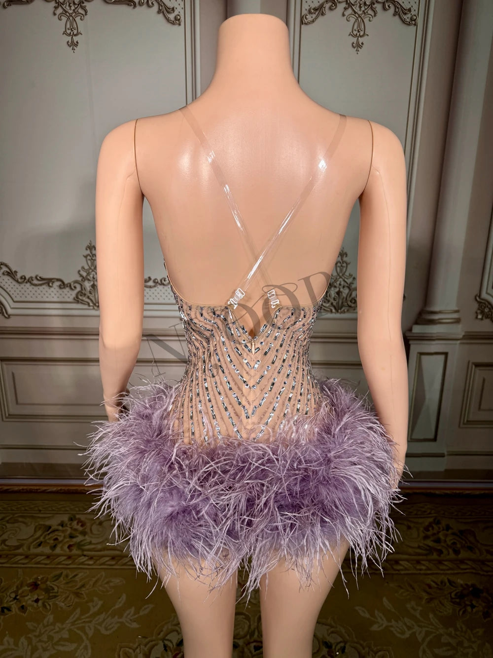 Stun the crowd in this luxurious bodysuit for women, adorned with dazzling rhinestones and elegant ostrich feathers. Featuring sexy mesh panels and a transparent design, this evening performance costume is perfect for celebrations, birthdays, or making a dramatic entrance on stage. Elevate your look with glamour and unforgettable sophistication!
