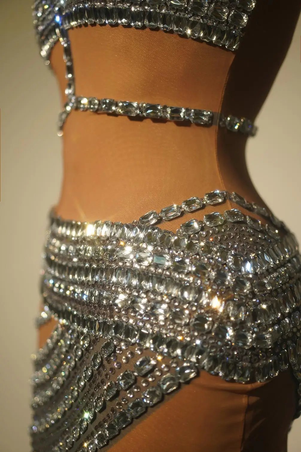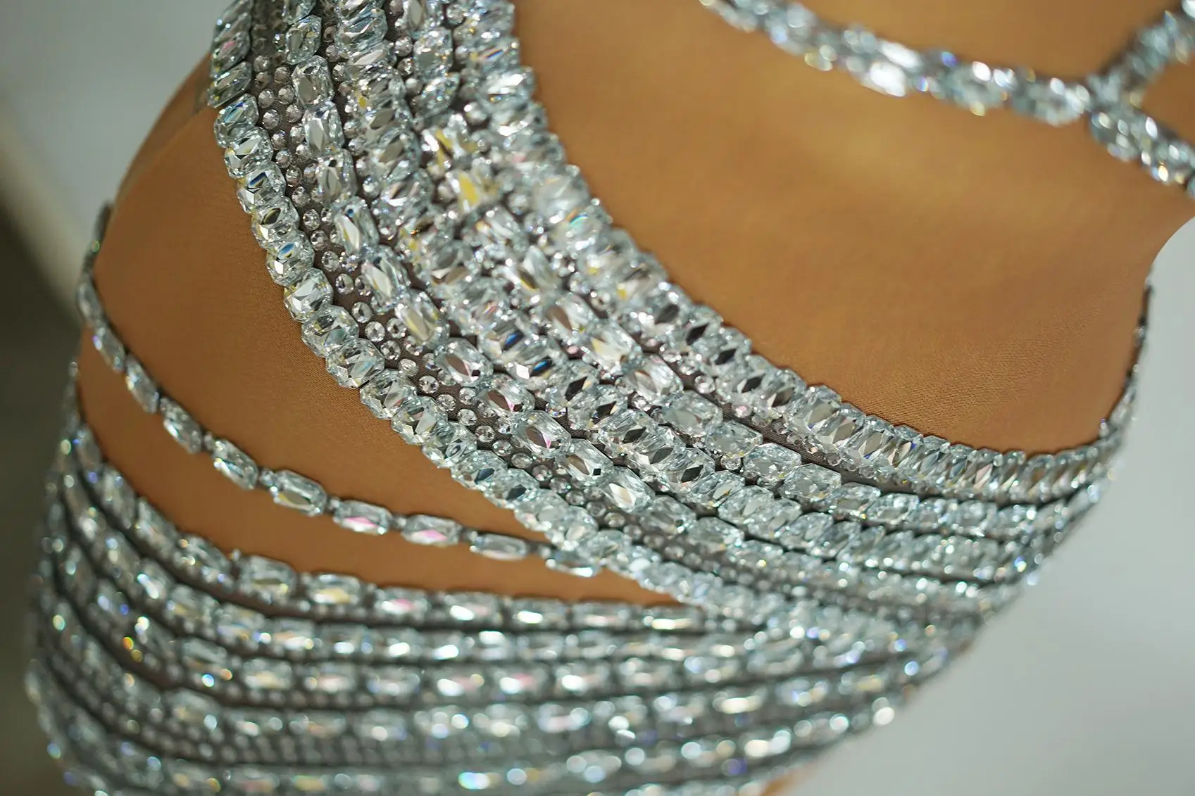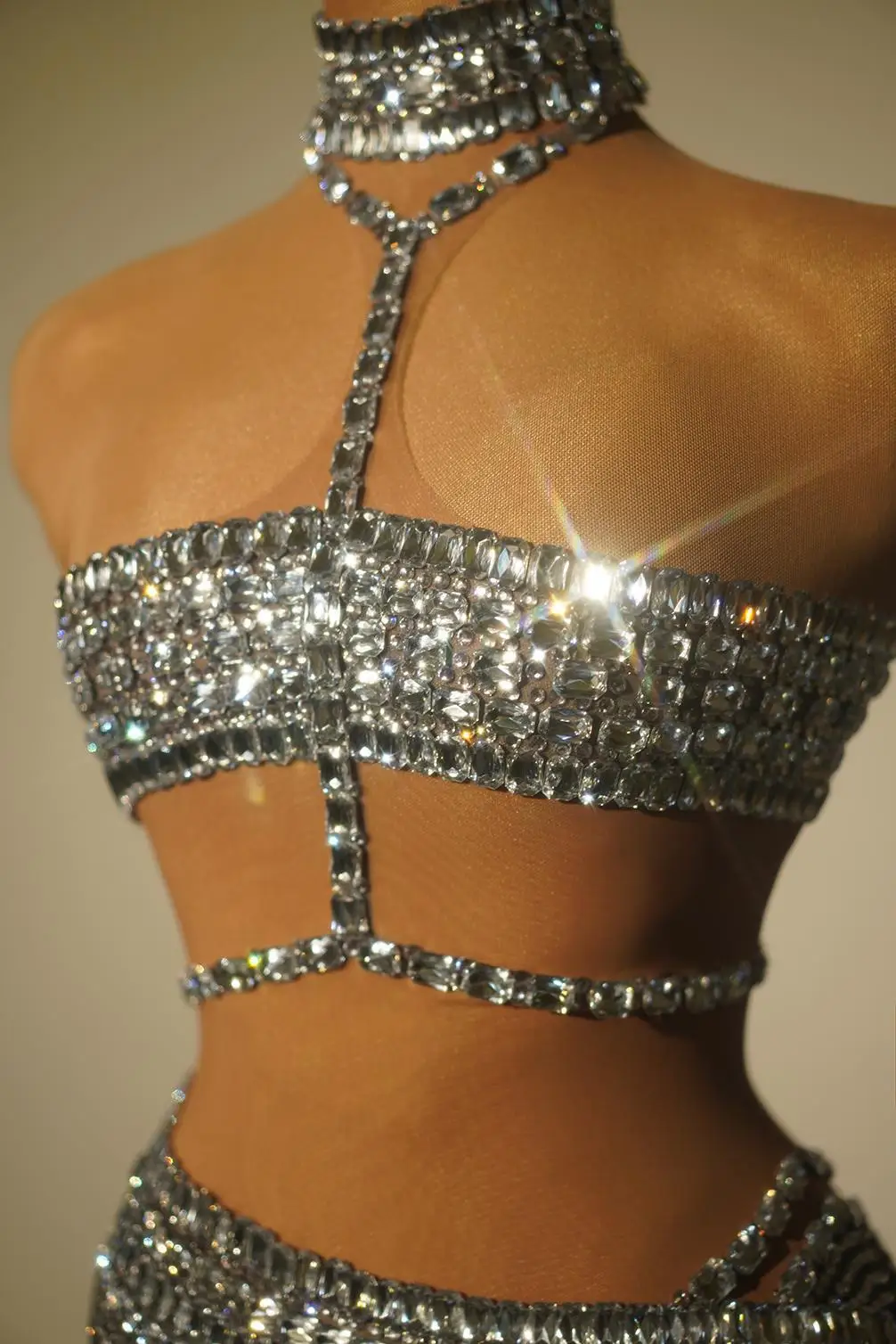 Luxurious Rhinestones Sexy Hollow Out Backless Transparent Short Dress Women Birthday Evening Celebrate Party Dresses