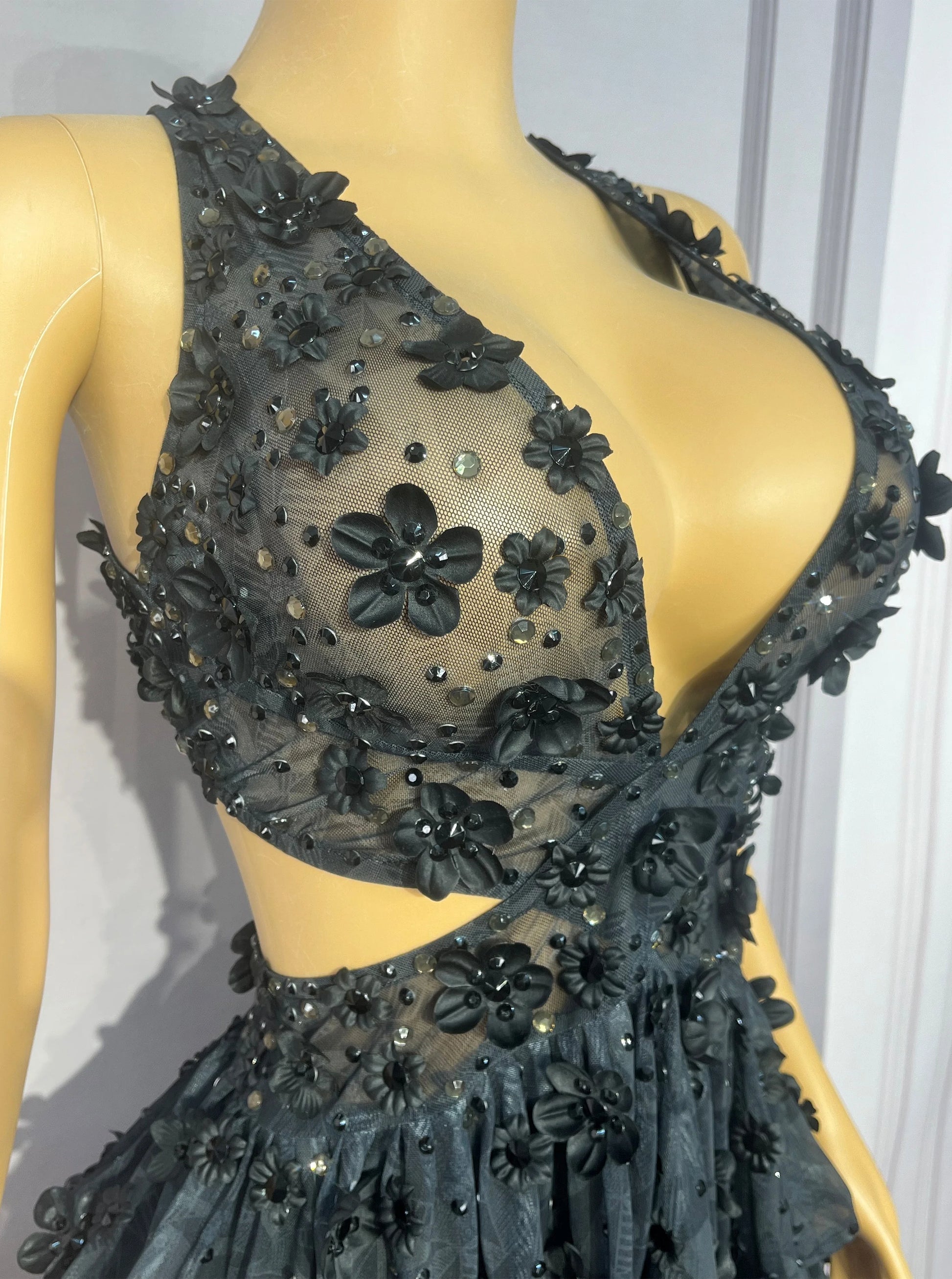 Luxurious Sexy V-neck Backless Black Dress Shining Rhinestones Petals Gowns Party Celebrate Evening Photoshoot Stage Wear