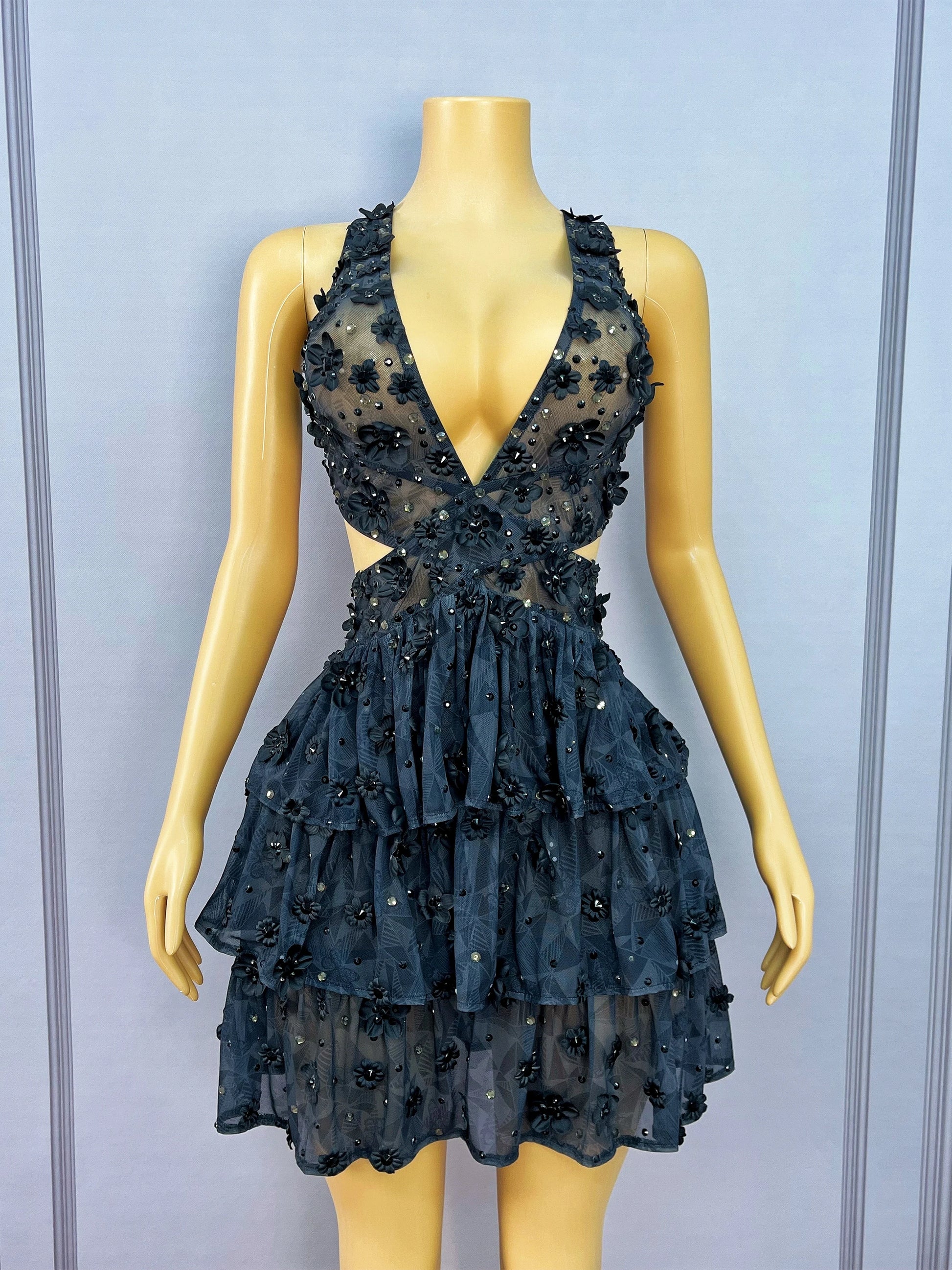 Command the spotlight in this Luxurious Sexy V-neck Backless Black Dress, a dramatic evening gown that combines seductive lines with refined, couture detailing. Cut from rich black fabric that flatters every silhouette, the dress features a plunging V-neck that frames the décolletage and a daring backless design that reveals the graceful sweep of the spine—perfect for elegant soirées, red-carpet moments, and high-impact photoshoots.
