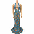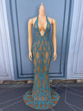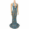 Shine in cinematic blue with this Luxurious Sparkly Blue Rhinestones V‑neck Backless Nude Mesh Dress — a couture-inspired gown designed to flatter on stage, at prom, and on the red carpet. Combining a sultry V‑neckline, dramatic backless design, and hand‑applied blue rhinestones over a nude mesh base, this dress creates an alluring, sculpted silhouette that photographs brilliantly.