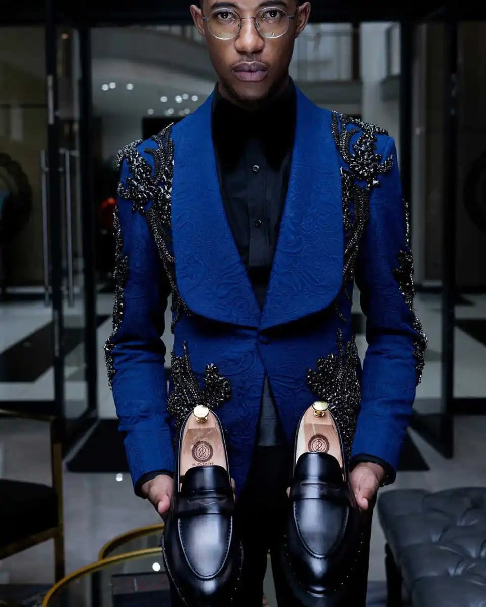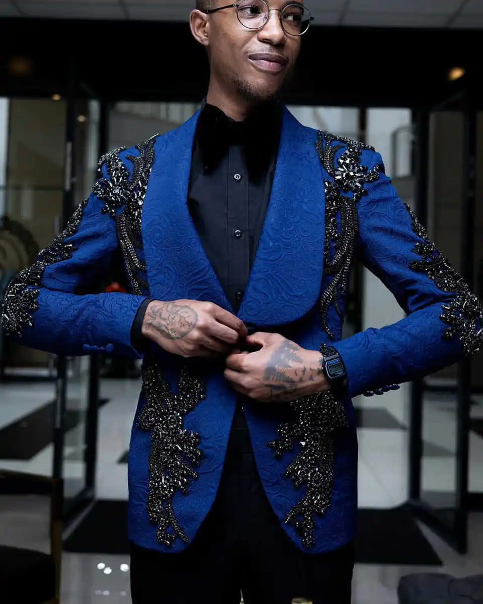 Elevate your formal wardrobe with this Luxury Appliques Men's Wedding Suit Blazer—an exquisitely tailored, single-breasted coat designed for grooms, groomsmen, and distinguished professionals who demand refined style. This blazer focuses on the jacket alone, offering a versatile statement piece that can be paired with matching trousers, tailored slacks, or even premium denim for a modern, fashion-forward look. The defining feature is the elegant shawl lapel, finished with decorative appliqués that add texture and a touch of bespoke craftsmanship without overwhelming the silhouette