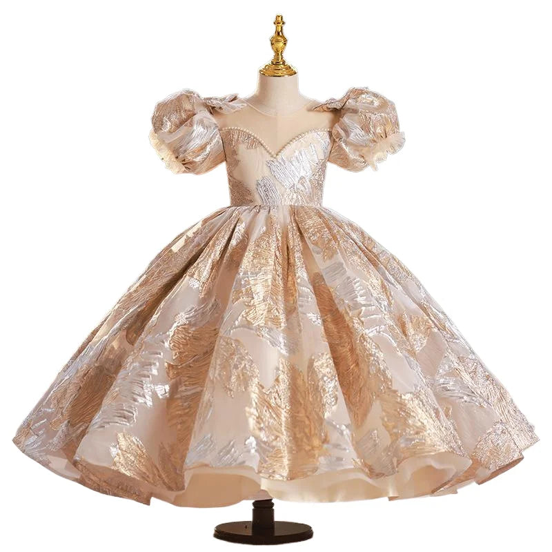 Luxury Bubble Sleeves Girls Dress Fashion Round Neck Princess Dresses Holiday Party Children's Vestidos Ball Gown for Girl