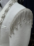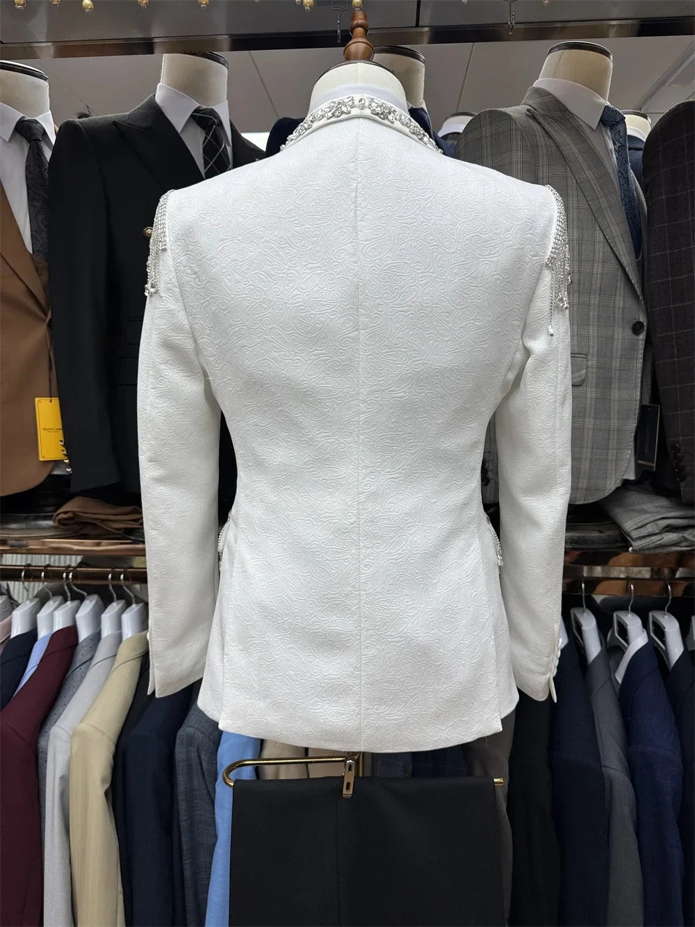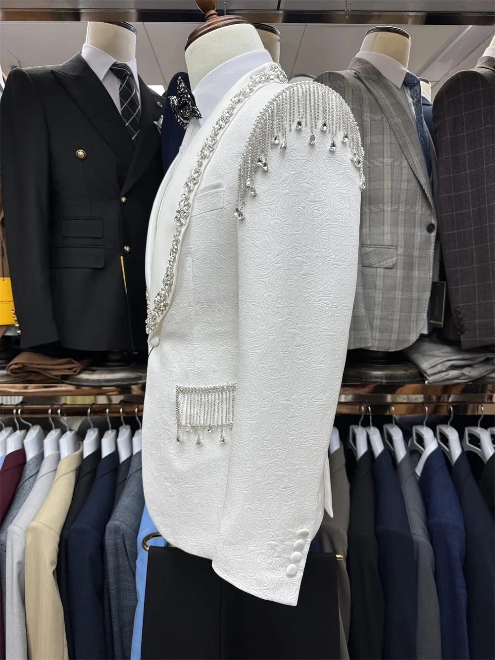 Luxury Crystal Men Suits Tailor-Made 2 Pieces Set Shawl Lapel Jacquard Jacket Tassel Blazer One-Button Customized Coat Pants