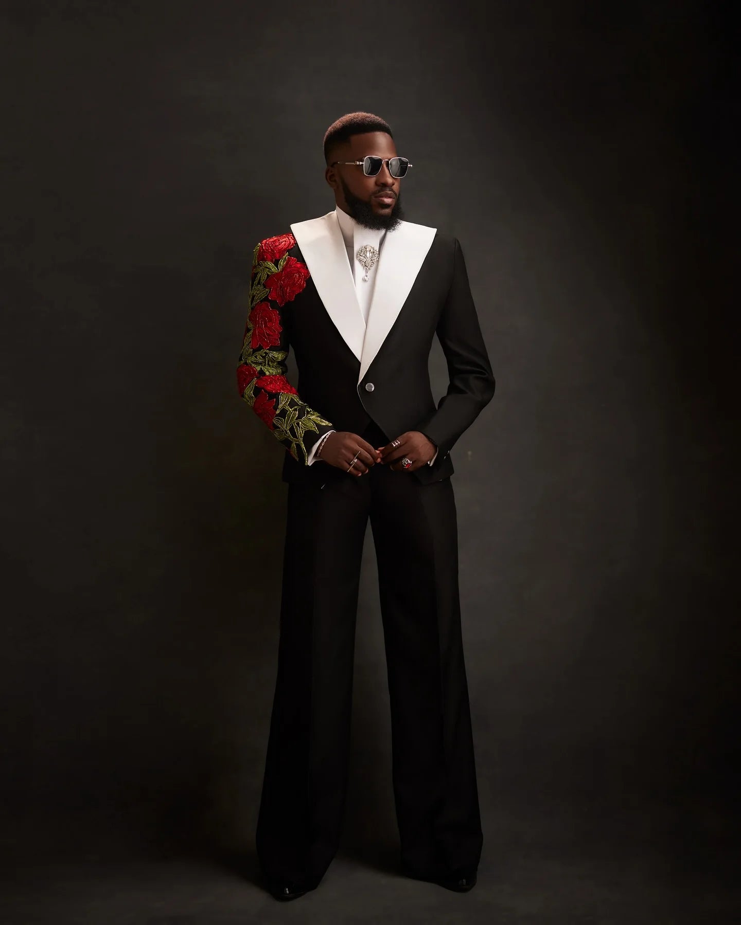 Elevate your formal wardrobe with this luxurious 2-piece men’s suit set, featuring a stylish blazer and matching trousers. Adorned with elegant crystal embellishments and a distinctive rose flower design, this suit is perfect for weddings, special occasions, or formal office events. Available in classic black and white and customizable to your fit, this tuxedo set combines modern fashion with timeless sophistication, ensuring you'll stand out at any event.