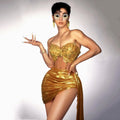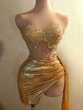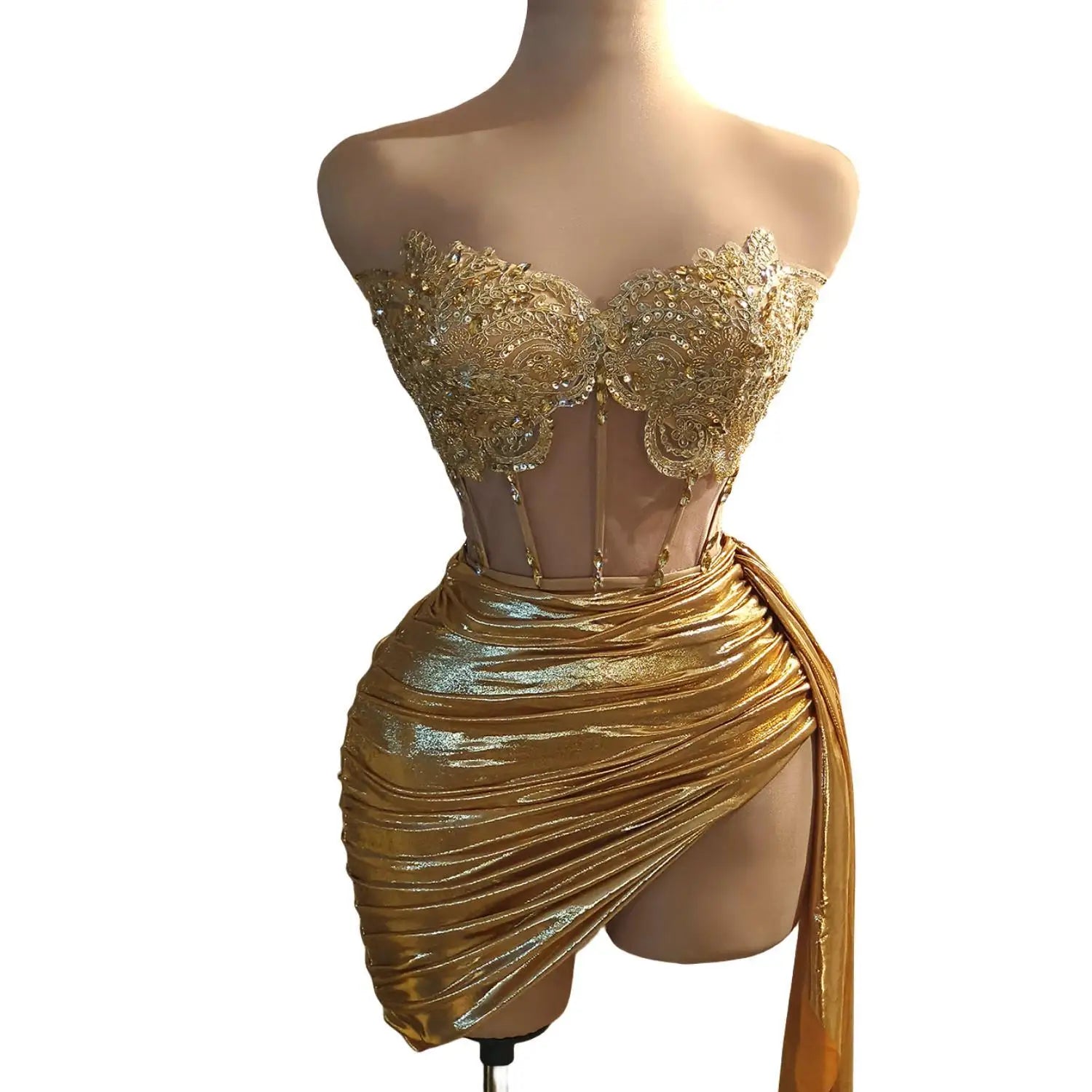 Luxury Gold Diamond Formal Occasion Cocktail Dresses 2-Piece Set Prom Gown Outfit Sexy Girls Short Prom Dress Birthday